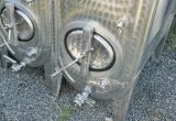 Wine storage; 1 manhole approx. 320 x 420 mm in the front bottom; 2 slightly different versions: version 1 with stackable frame in top and a reinforcement rod inside can be used to stack version 2