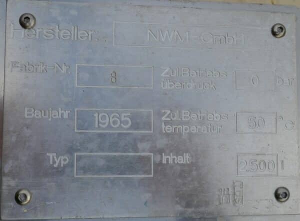 490 mm; slight differences in execution, e.g. B. manholes and outlets; Diameter of residual emptying mostly 25 mm (sometimes 50 mm); 2 tanks without level indicator; some residues of previous content