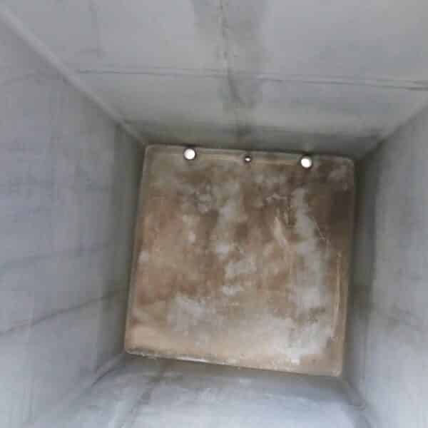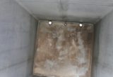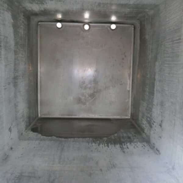Cosmetics; Basic dimensions inside: approx. 1,100 x 1,100 mm; Internal wall height: approx. 2,150 mm; light protective paint on the outside (no longer completely complete); Manhole diameter approx.