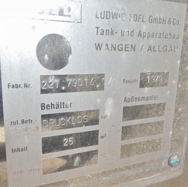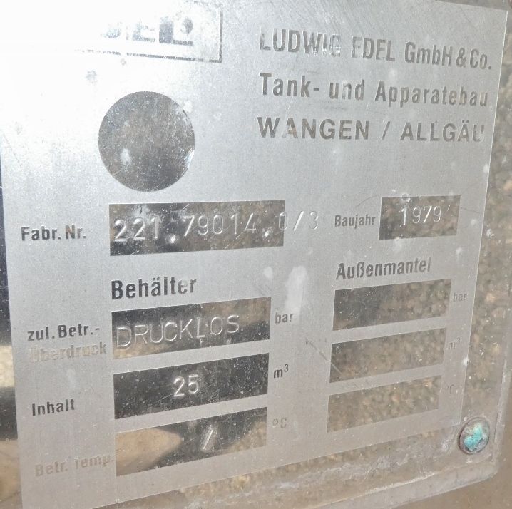 food industry; 1 tank with smaller dents in the cylinder, the other tank with stronger dents in the cylindrical part; motor data of the agitators only for one motor readable; Wall thickness of the