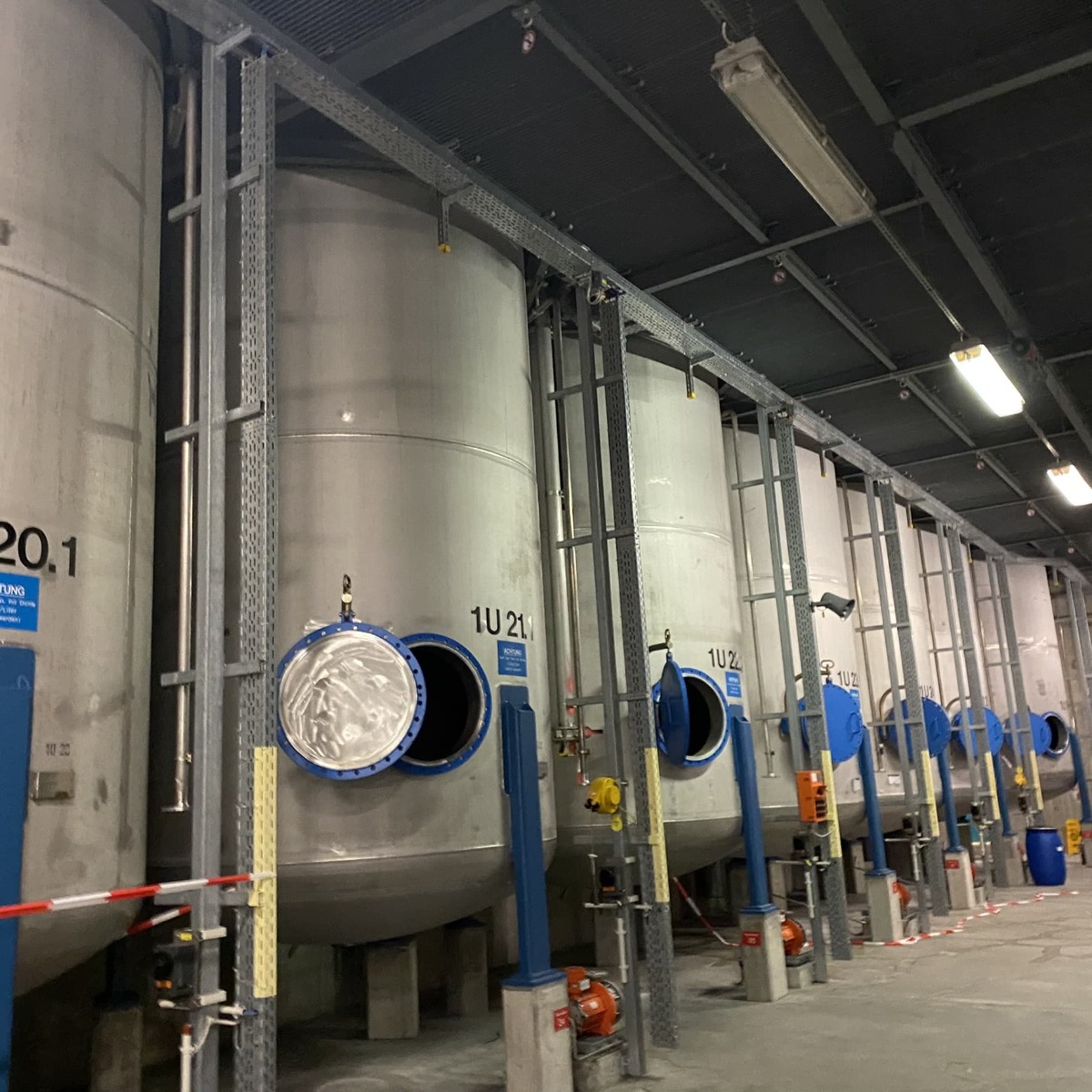Pharmaceutical chemistry; Test pressure: + 4 bar; manholes each DN 600; Piping inside the tanks; manhole cover plated