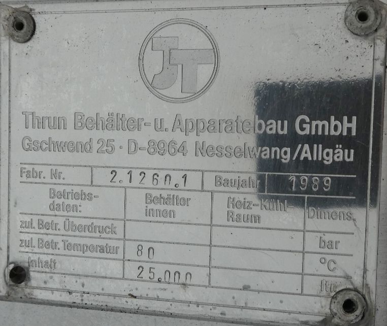 25000 liter tank i Rostfritt 304