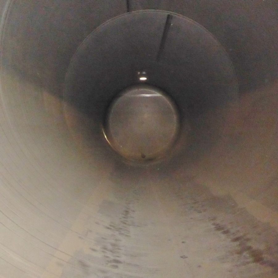 textile factory; 1 manhole 350 x 450 mm in the front bottom; lime residues;dents at the insulation jacket;pipe end cut flush