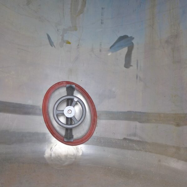 Wine storage; Manhole approx. 300 x 400 mm; 3 loose insert feet each with 3 height-adjustable screws made of Fe (insert sleeves welded to the tank also made of Fe)