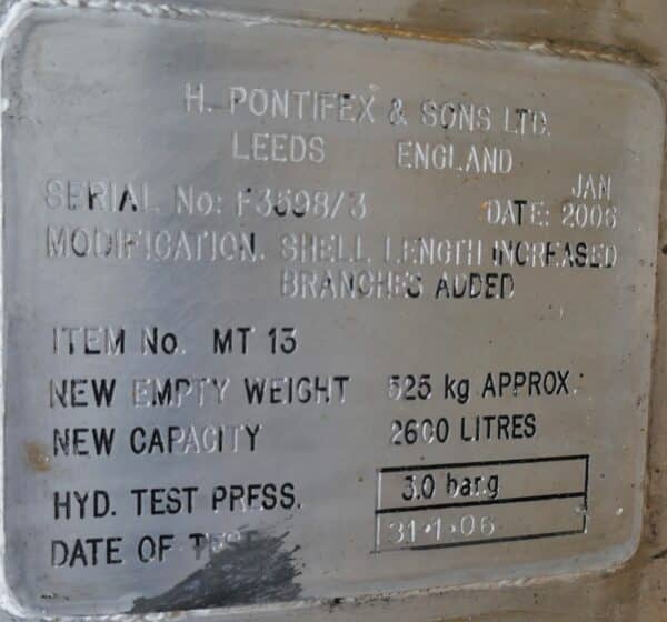 Cosmetics; Test pressure according to type plate: 3 bar; 1 tank with 1 dent in the transition between cylinder and upper bottom; in addition, one of the feet on this tank is slightly bent (see
