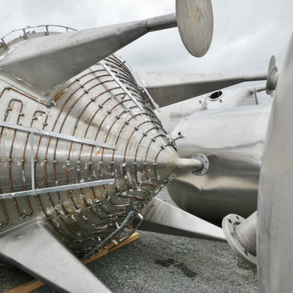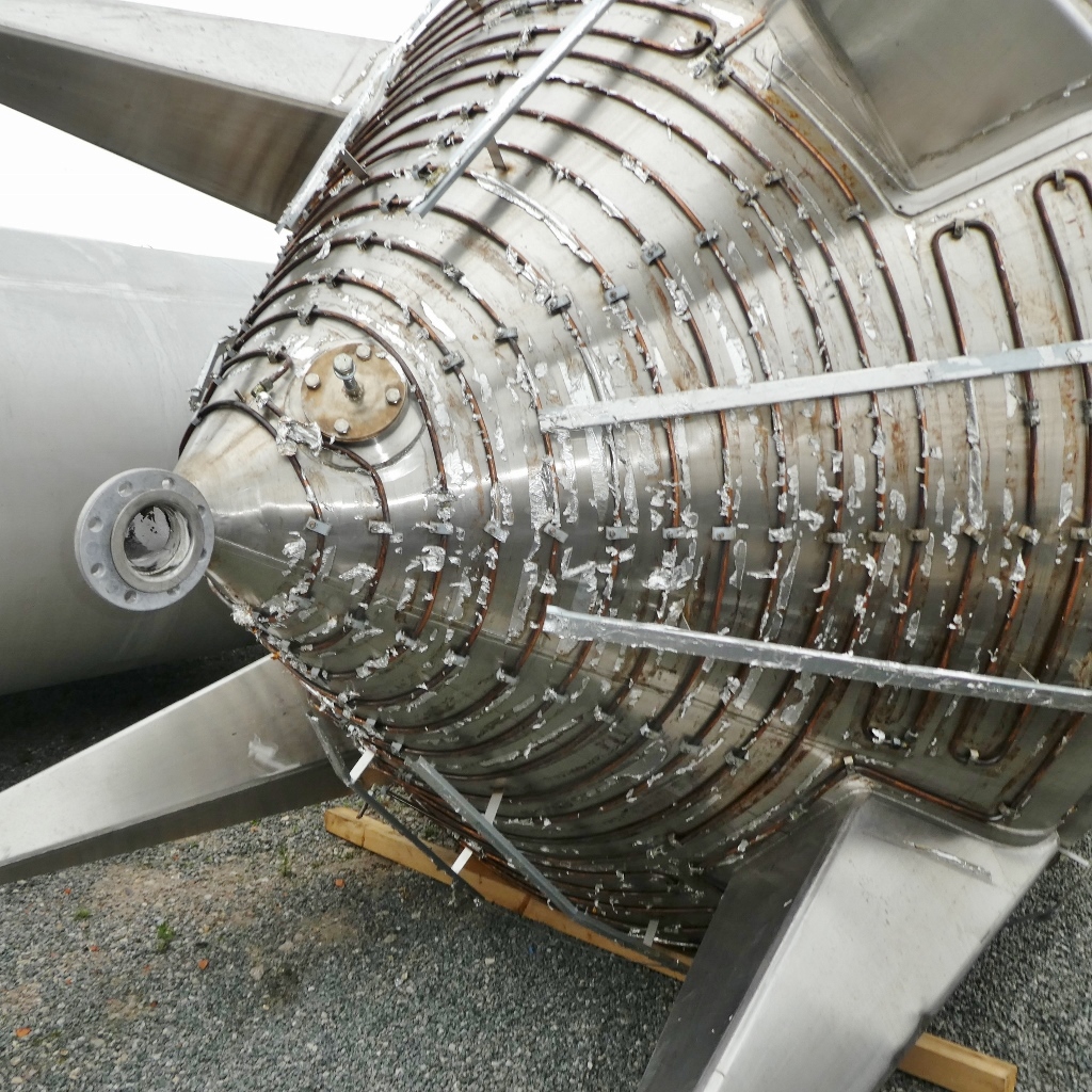 Seal manufacturing; Dents in the double jacket; heating coil (copper) around the cone bottom; cone height approx. 1.400 mm; 1 crane eye in the upper bottom; footplates partially bent ; some