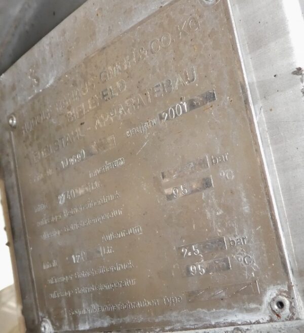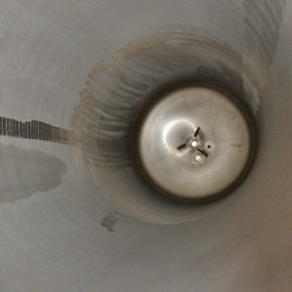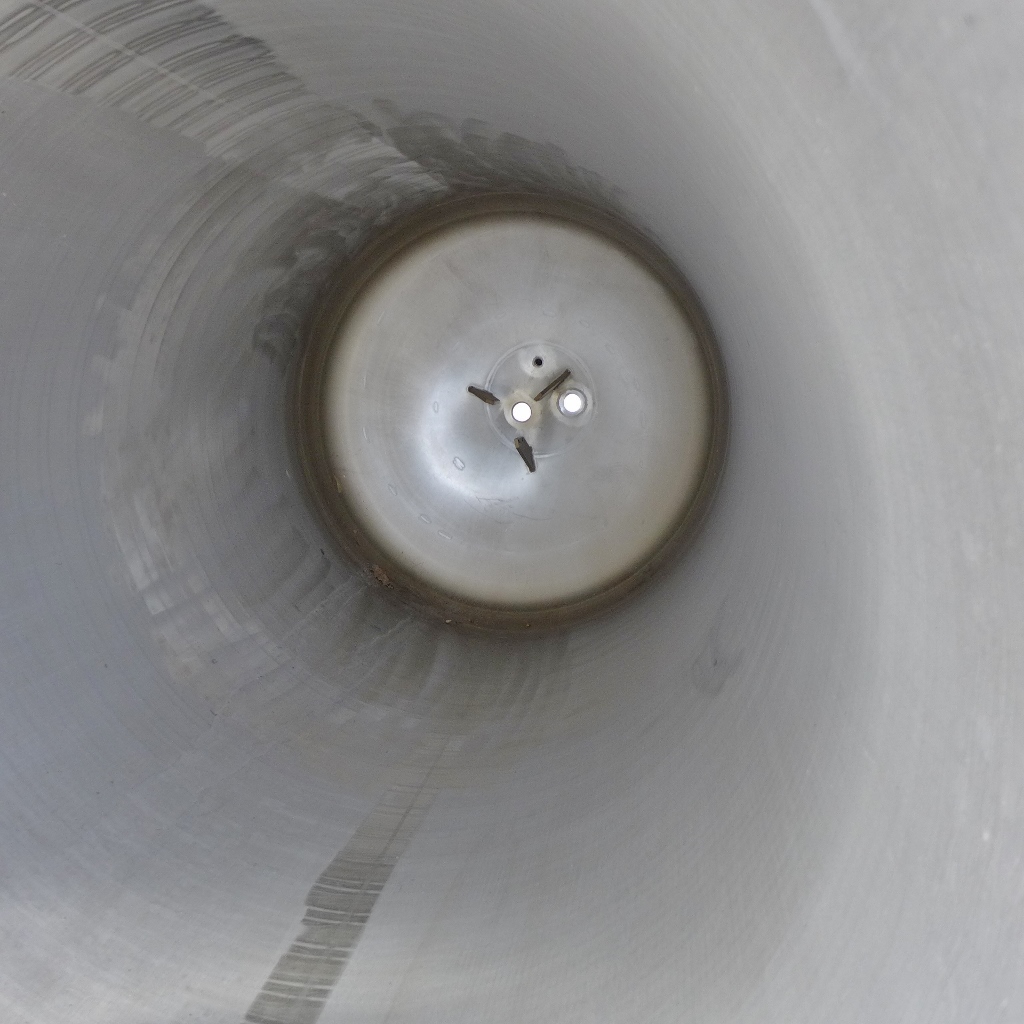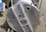 Lid rim slightly bent in places; Fastening screws of the cover segment are bent; Wall thickness of the hinged segment of the tank cap approx. 2 mm; some residues of previous content