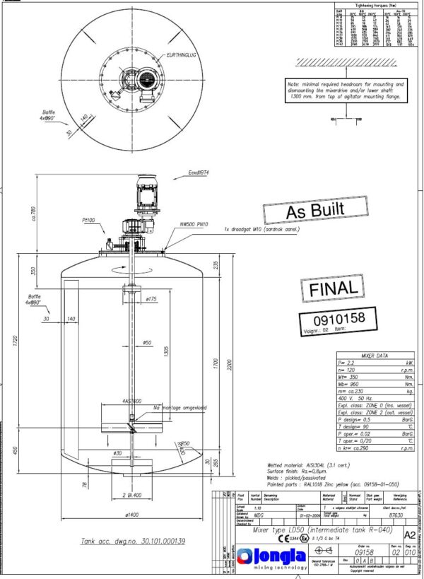 Tank AD-2000 Merkblatt, agitator CE0344 ATEX Ex 2 1/3 G bc T4; hardly ever used; we can’t give any guarantees about the agitator