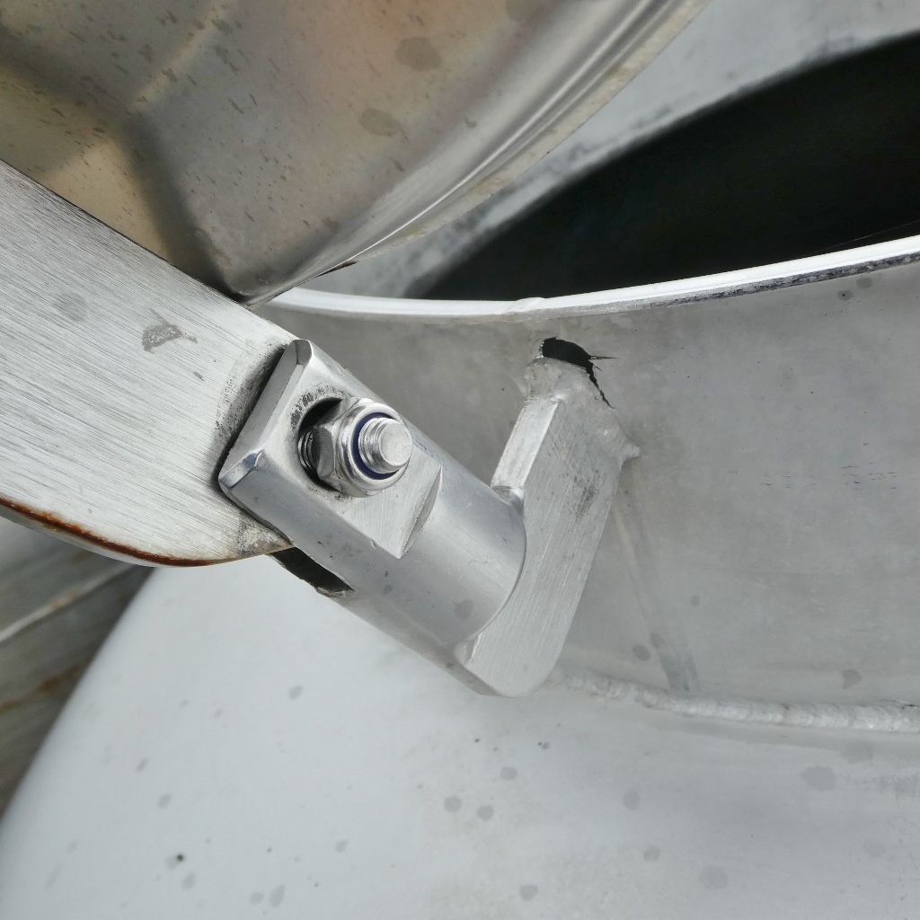 cosmetic; 1 connection DN 40 11851 in the upper bottom; Tank 1: Manhole cover suspension bent; Tank 2: smaller dents and 1 foot slightly pressed into the lower bottom (see photos)
