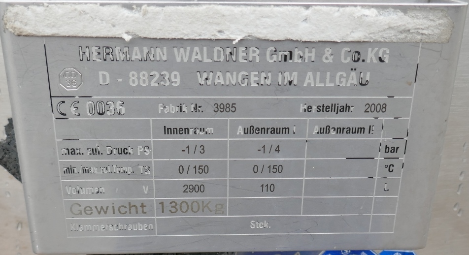 2900 liter tank i Syrafast 316