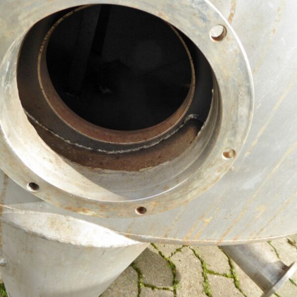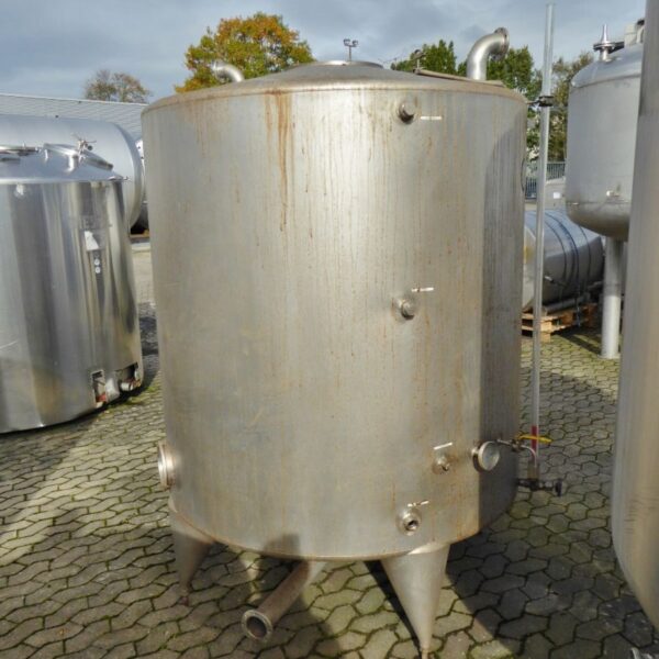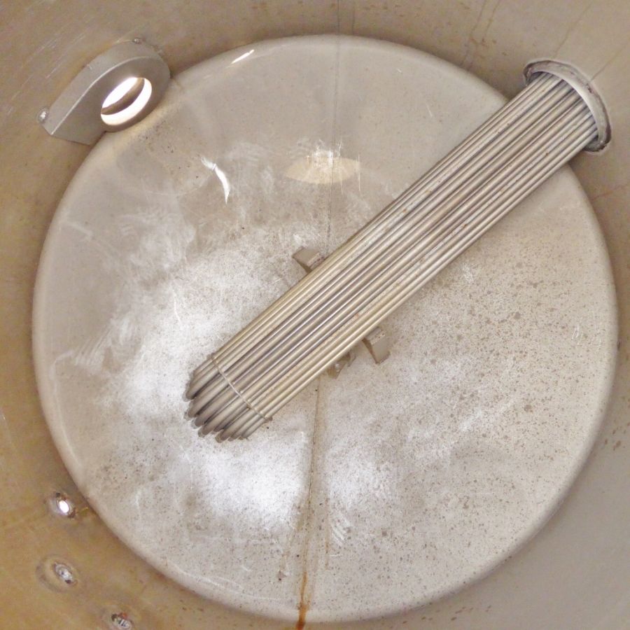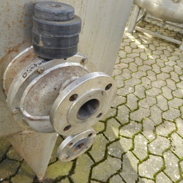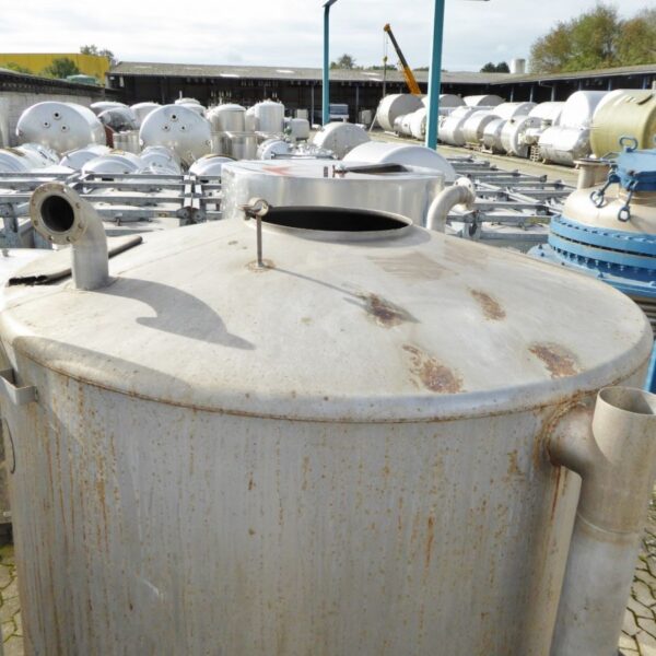 Cip-tank in a brewery; 1 pipeline outside (ens cut off); some residues of previous content;manhole cover is missing