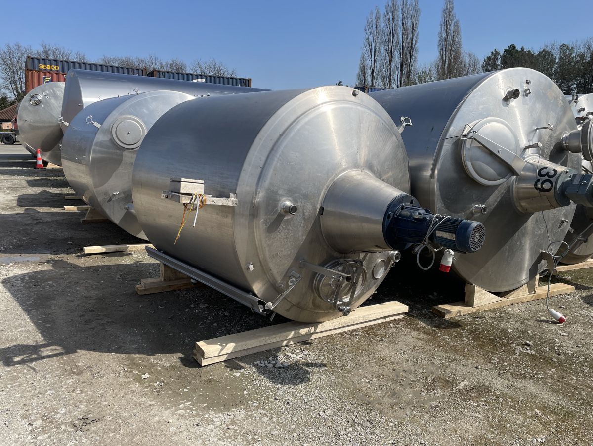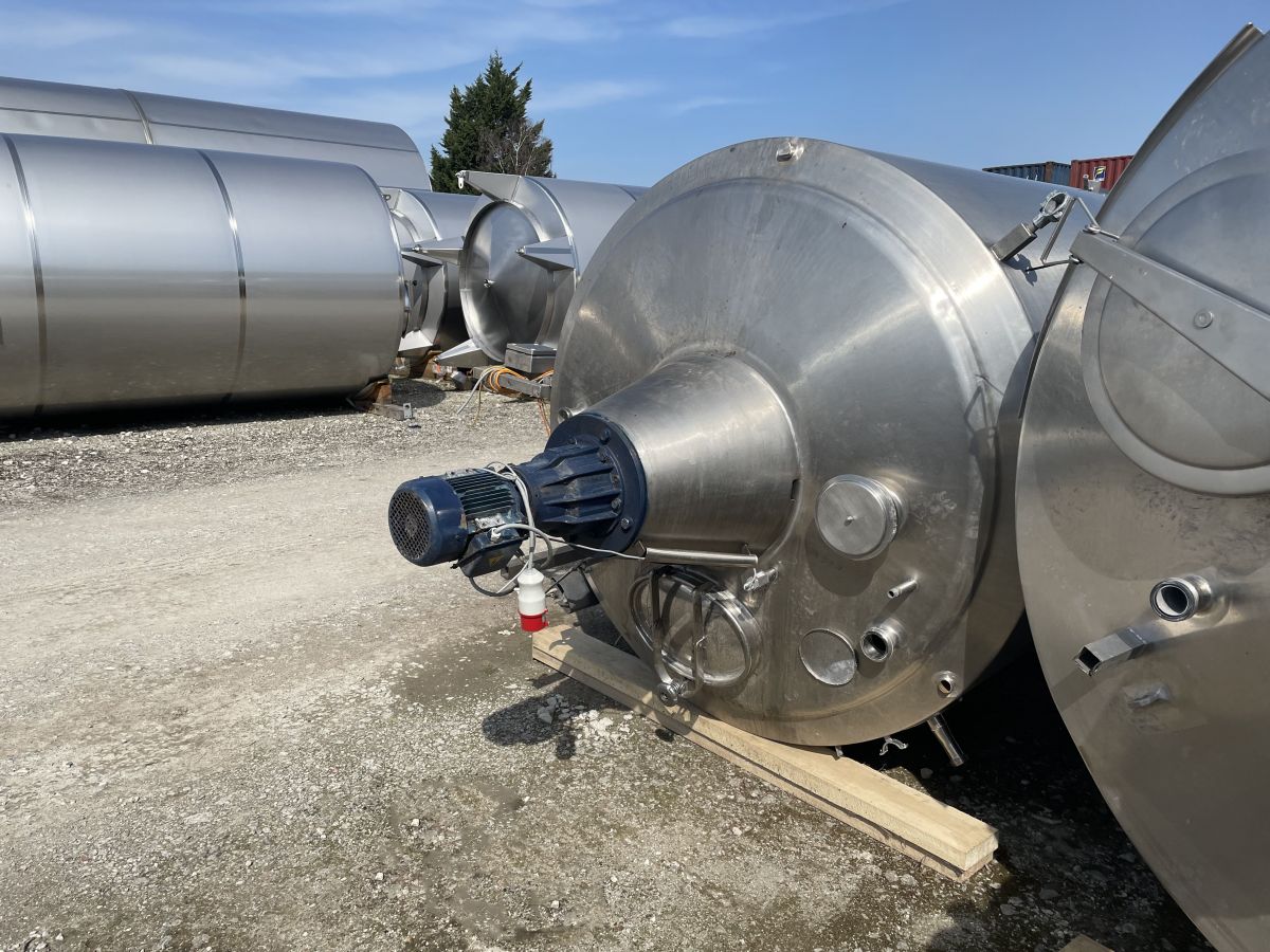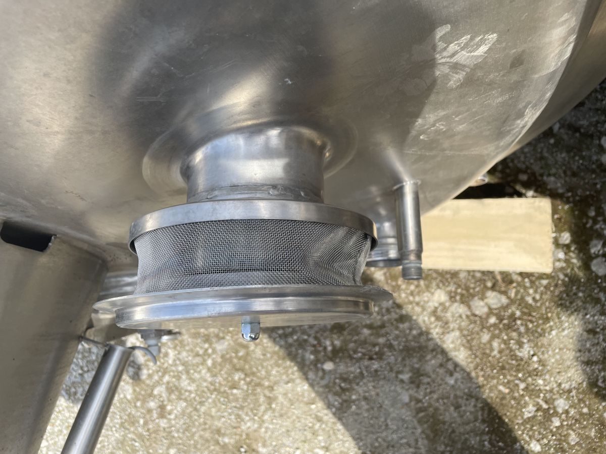 Article type: second-hand mixing tank Additional information: we can’t give any guarantees about the heating/cooling jacket; we can’t give any guarantees about the agitator Volumetric volume (L): 3.000 L Pressure in tank: ATM - atmosferic Material wet parts: SS AISI 304 (V2A) Model: vertical Configuration: insulated with heat-exchanger Heat exchanger: yes Insulation: yes Mobile tank: no Top type: conical Shape of tank: cylindrical Bottom type: conical Bottom outlet: yes Total discharge: yes Fixation points: 3 adjustable feet Type of HE on the cylinder: half pipe welded onto the outside of the innertank Position HE: the complet cilinder Type of HE on the bottom: half pipe welded onto the outside of the innertank Manway(s): RVS 304 Gasket manway(s): unknown Fixation point(s): RVS 304 Suitable for food industry: yes Documents included: no Technical drawing included: no Registration plate on the tank: no Flange for agitator: no Number of manways: 1 Position of manway: at the top Height manhole 1 (mm): 350 mm x H 440 mm Hinged lid: yes Tank outlet: inside Ø 50 mm Agitator: yes Agitator type: propeller agitator Position engine: at the top Power: 2 Voltage: 380 V - three-phase Current: 3,70 Distance from outlet to ground: 700 mm Outer diameter tank: 1.700 mm Cylinder height: 1.650 mm Total height of tank: 3.000 mm Empty weight tank: 970