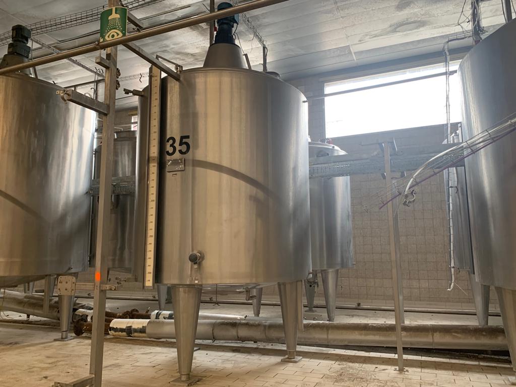 Article type: second-hand mixing tank Additional information: we can’t give any guarantees about the heating/cooling jacket; we can’t give any guarantees about the agitator Volumetric volume (L): 3.000 L Pressure in tank: ATM - atmosferic Material wet parts: SS AISI 304 (V2A) Model: vertical Configuration: insulated with heat-exchanger Heat exchanger: yes Insulation: yes Mobile tank: no Top type: conical Shape of tank: cylindrical Bottom type: conical Bottom outlet: yes Total discharge: yes Fixation points: 3 adjustable feet Type of HE on the cylinder: half pipe welded onto the outside of the innertank Position HE: the complet cilinder Type of HE on the bottom: half pipe welded onto the outside of the innertank Outer jacket (ornamental wall): RVS 304 Manway(s): RVS 304 Gasket manway(s): unknown Fixation point(s): RVS 304 Wet parts agitator(s): SS AISI 304 (V2A) Suitable for food industry: yes Documents included: no Technical drawing included: no Registration plate on the tank: no Flange for agitator: no Number of manways: 1 Position of manway: at the top Height manhole 1 (mm): 350 mm x H 440 mm Hinged lid: yes Tank outlet: inside Ø 50 mm Agitator: yes Agitator type: propeller agitator Position engine: at the top Power: 1,50 Voltage: 380 V - three-phase Current: 3,70 Distance from outlet to ground: 700 mm Outer diameter tank: 1.700 mm Cylinder height: 1.650 mm Total height of tank: 3.000 mm Empty weight tank: 860