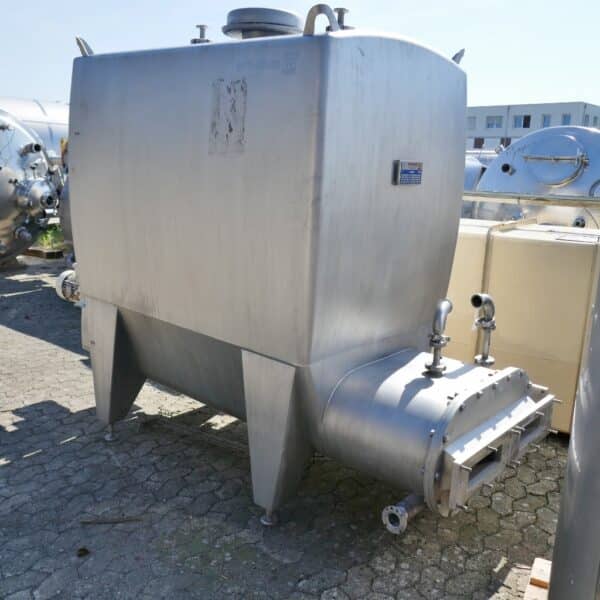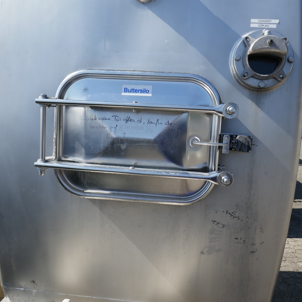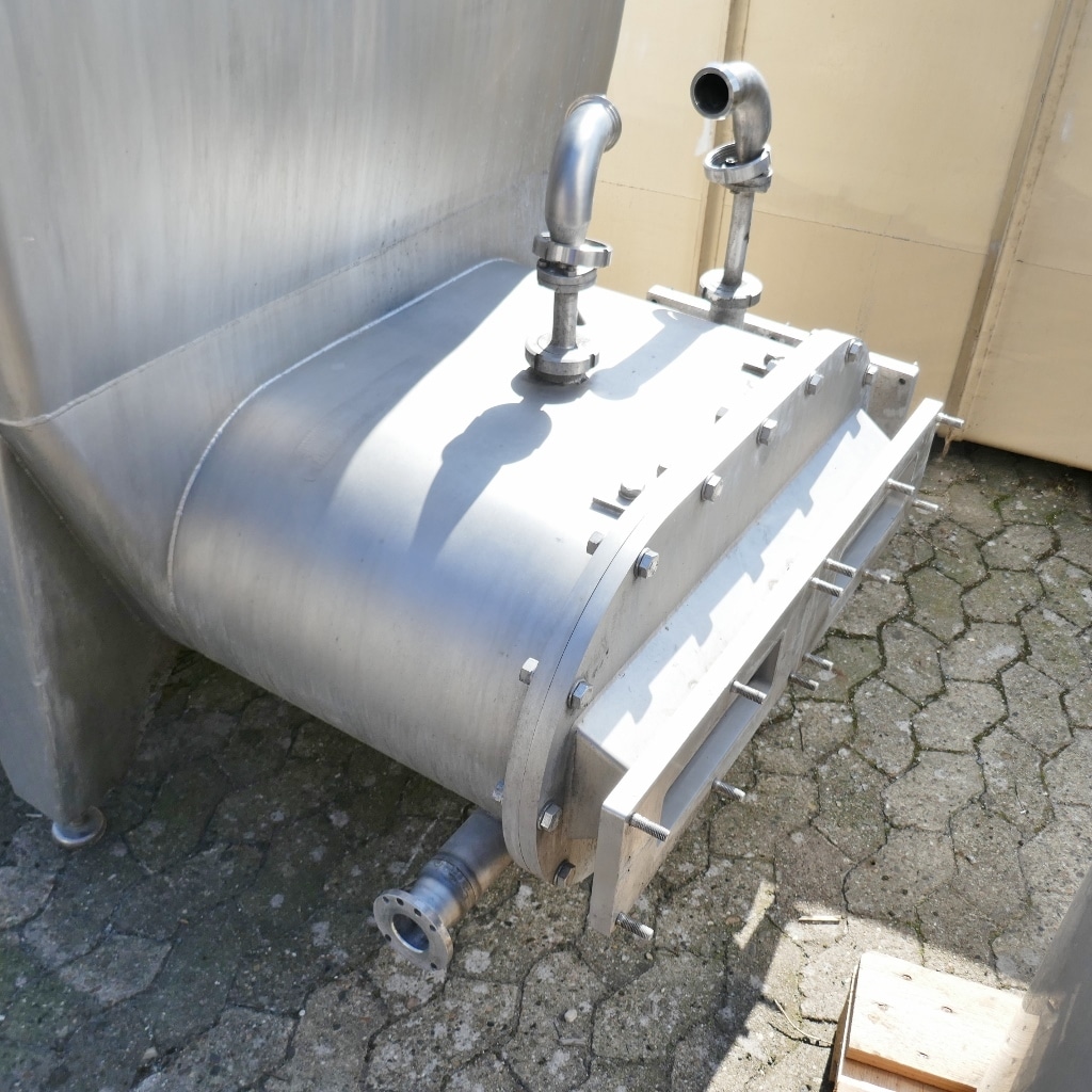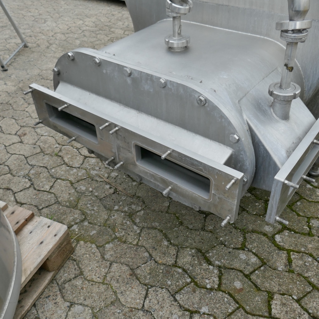 Dairy; 1 manhole approx. 420 x 535 mm in the front bottom, 1 side handhole diameter approx. 200 mm; covers in the rear area are missing (see photos), tank is equipped with 2 conveyor screws