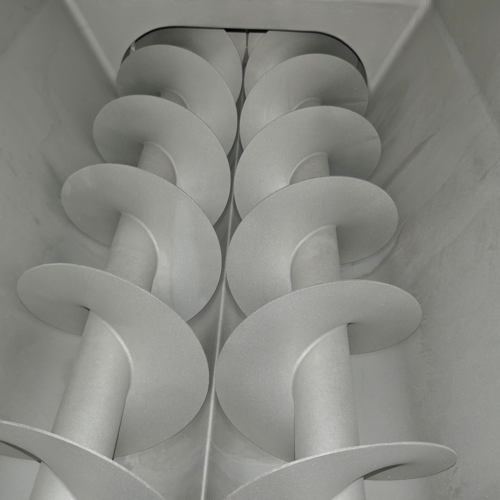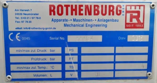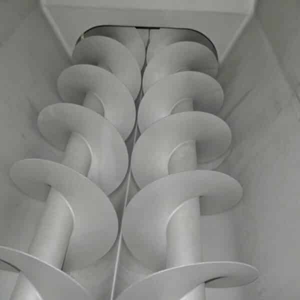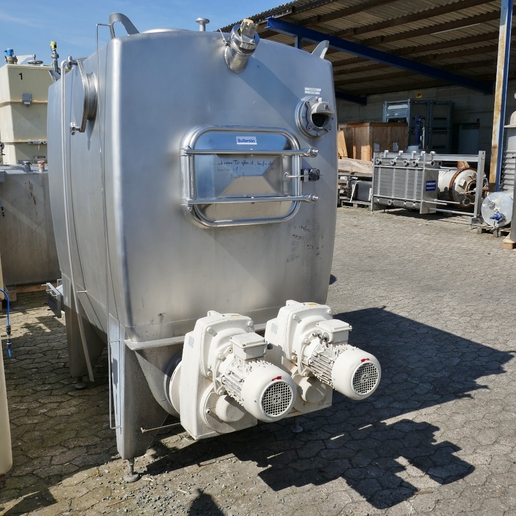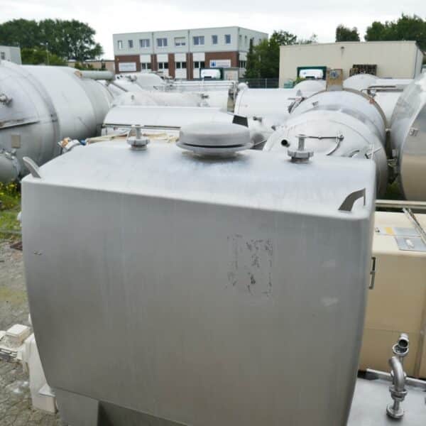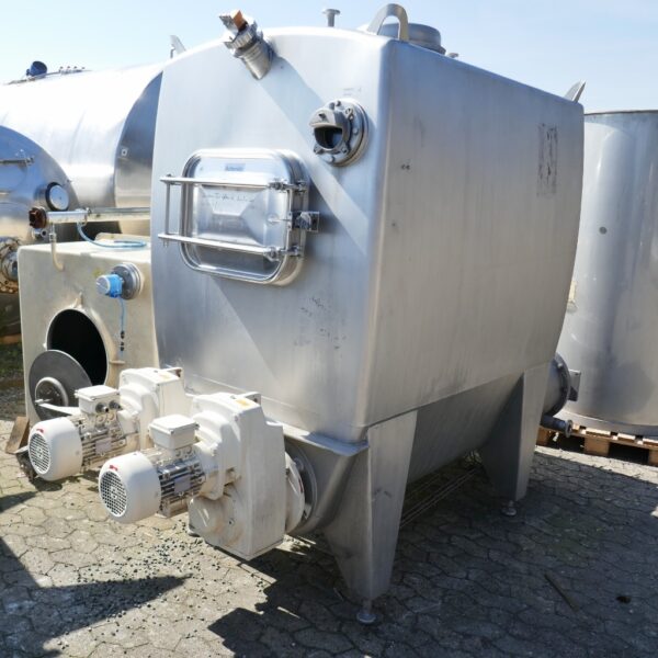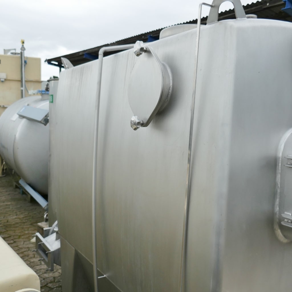 Dairy; 1 manhole approx. 420 x 535 mm in the front bottom, 1 side handhole diameter approx. 200 mm; covers in the rear area are missing (see photos), tank is equipped with 2 conveyor screws