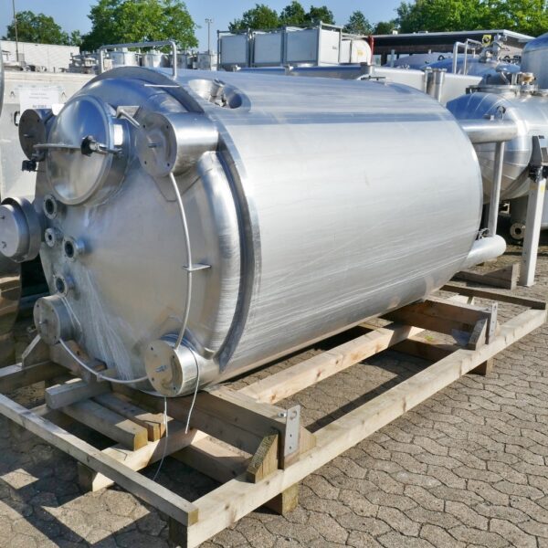 Lye or hot water tank in the food industry; Slight differences in design; small dents in the insulating jacket of the lower bottom; slight metallic discoloration inside; Both tanks stood as