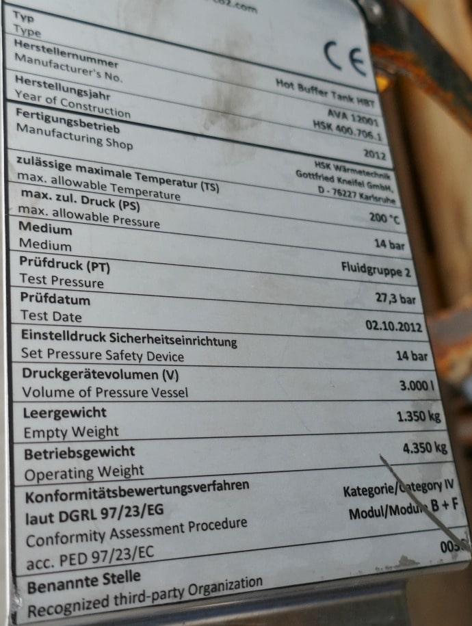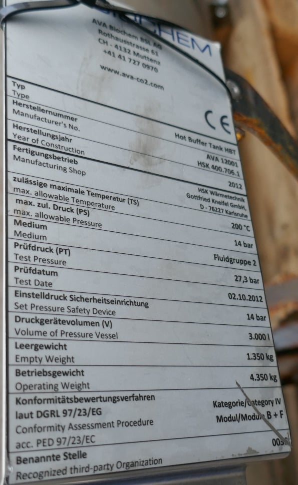Insulation brackets made of Fe around the outside of the cylinder (see photos); some residues of previous content;Metallic discolouration inside