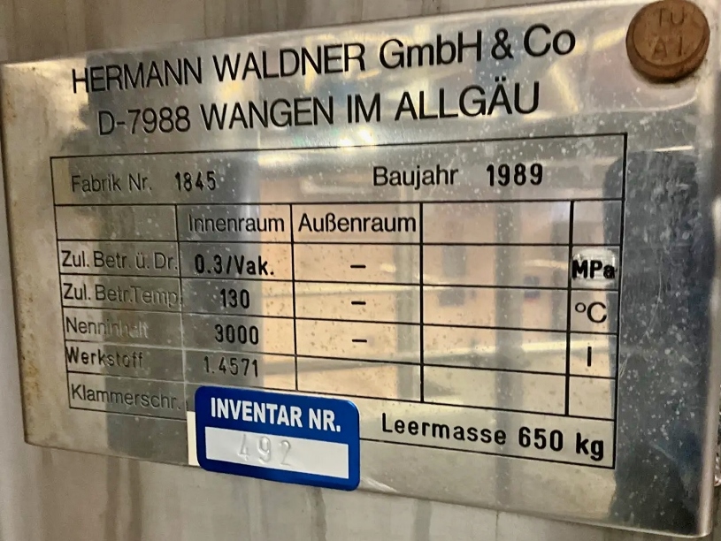 3000 liter tank i Syrafast 316