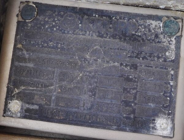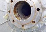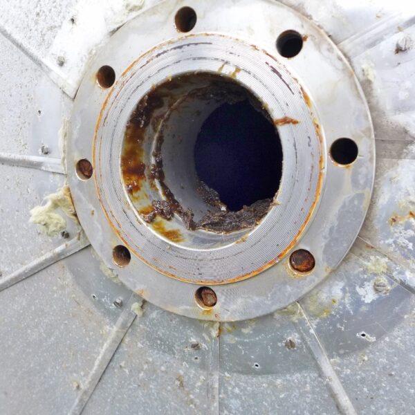 Wool fat ; Manhole diameter approx. 580 mm; metallic discoloration inside in the area of the upper bottom; Insulation jacket with dents and smaller sheet metal cutouts; some residues of previous