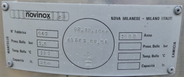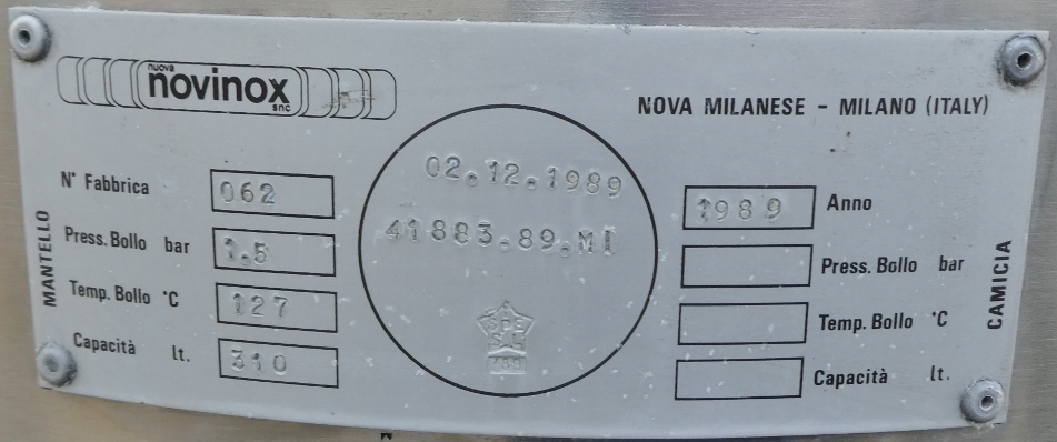 Pharmacy (liquids; not hazardous to health); Test pressure: 1.5 bar; Test temperature: 127 ° C .; 1 step on the outside of the tank; 1 head hole diameter 300 mm in the top bottom; 2 welded brackets