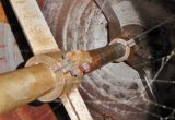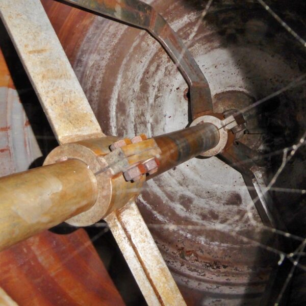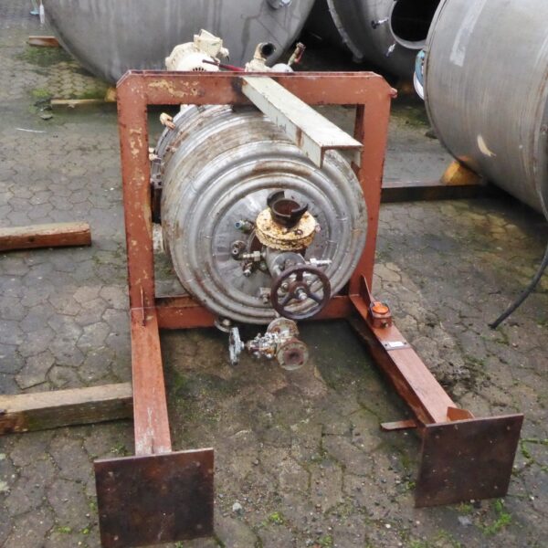 chemistry; 3-footed frame, Fe (lacquered; 1 foot shortened); clamp srews, Fe (with corrosion); some residues of previous content; we can’t give any guarantees about the agitator