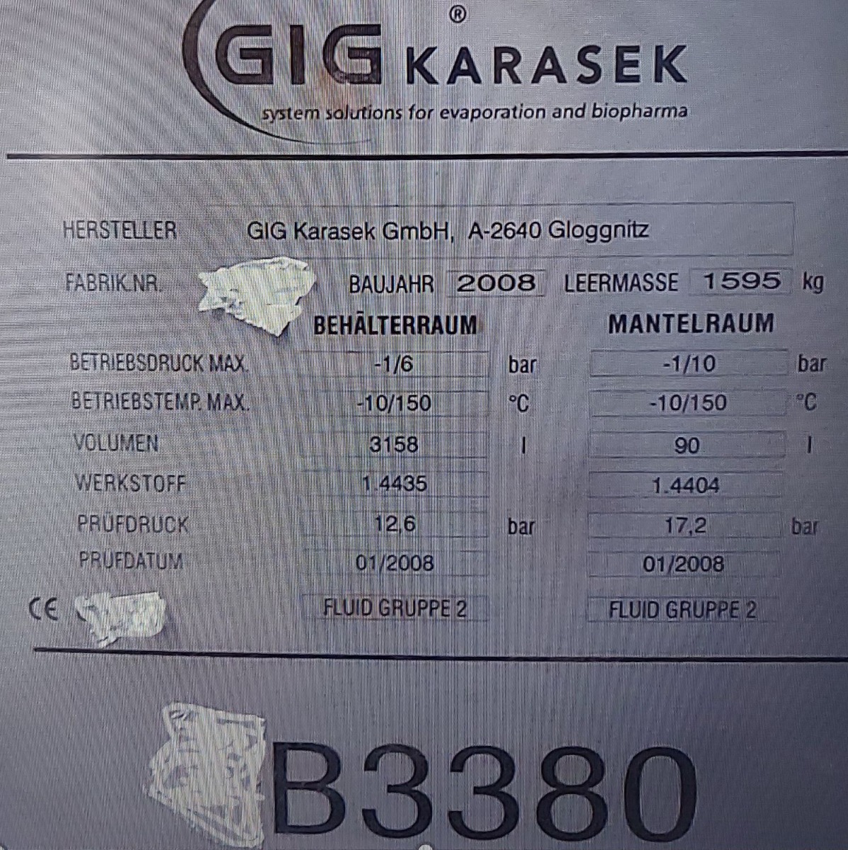 tank is unused, was only filled with demineralised water for pressure testing; we can’t give any guarantees about the heating/cooling jacket; we can’t give any guarantees about the agitator