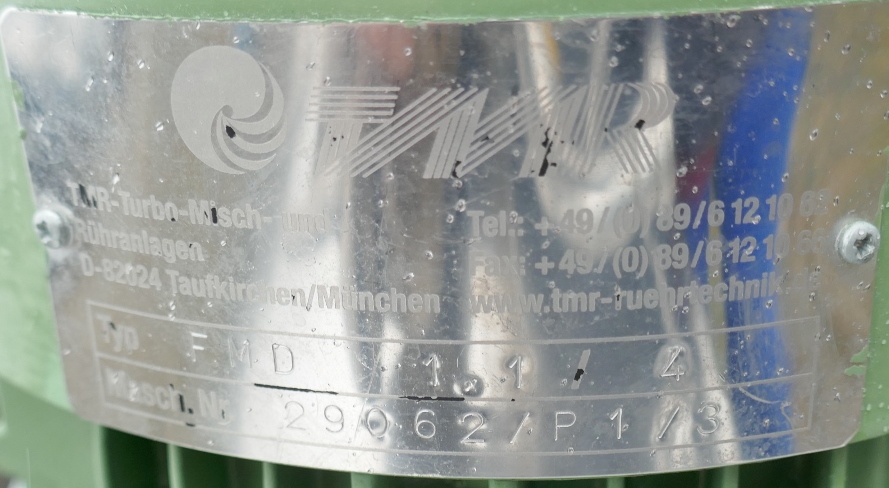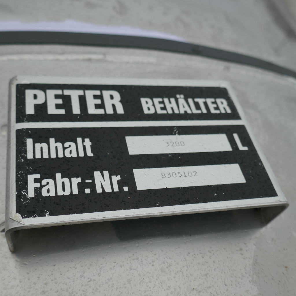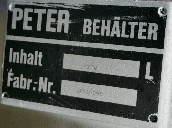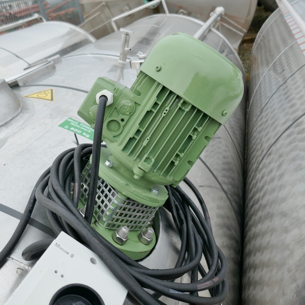 Additional information: Herbal medicines; 1 handhole diameter appr. 200 mm in the upper bottom Volumetric volume (L): 3.200 L Pressure in tank: ATM - atmosferic Material wet parts: SS AISI 304 (V2A) Model: vertical Configuration: single-skin Heat exchanger: no Insulation: no Mobile tank: no Total discharge: yes Documents included: no Technical drawing included: no Registration plate on the tank: yes Flange for agitator: no Outlet of tank: DN32 DIN 11851 Agitator: yes Number of revolutions: 1.400 Power: 1,10 Internal diameter tank: 1.200 mm Cylinder height: 2.500 mm Total height of tank: 3.450 mm Empty weight tank: 550