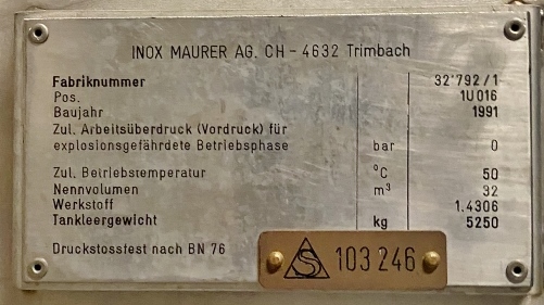 32000 liter tank i Rostfritt 304