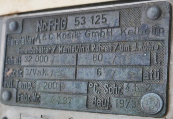 Chemistry; We should receive technical documents for the tanks shortly (but they haven't arrived yet); Manhole cylinder diameter 500 mm (most of the manhole cover screws are missing); 1 tank has 1