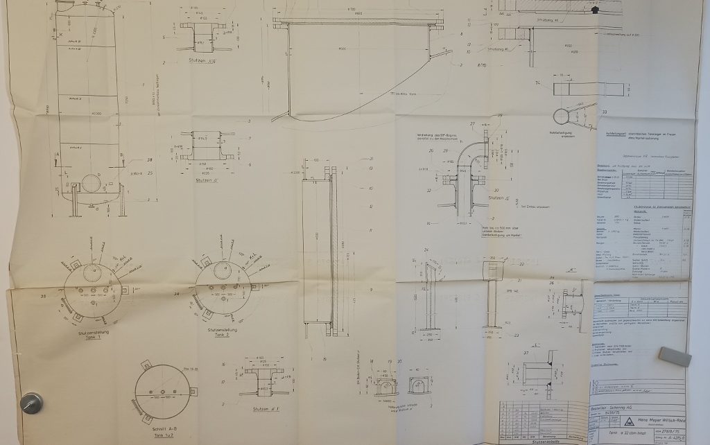 Chemistry; Electric heating cables around parts of the tank; Diameter manhole cylinder 600 mm; Insulation with larger cutouts in insulation and insulation jacket; tank is currently provided with a