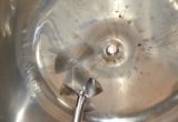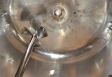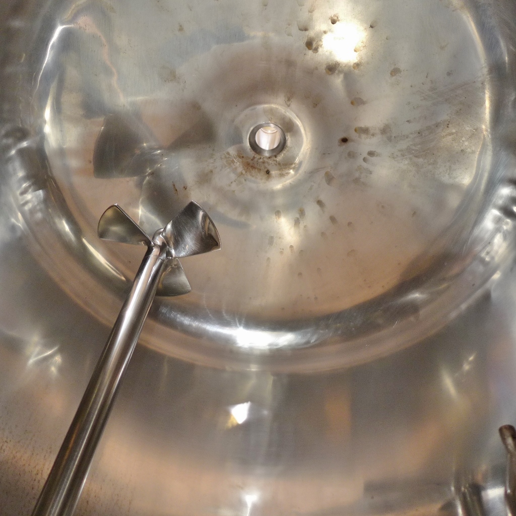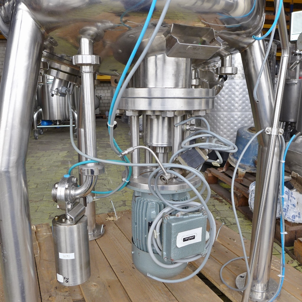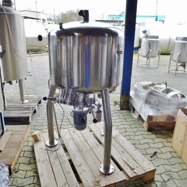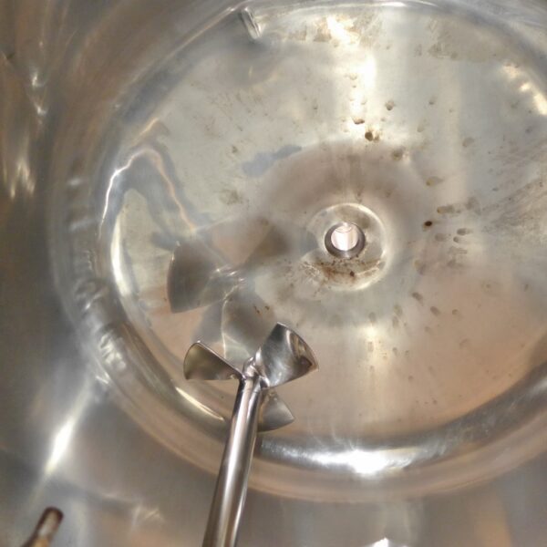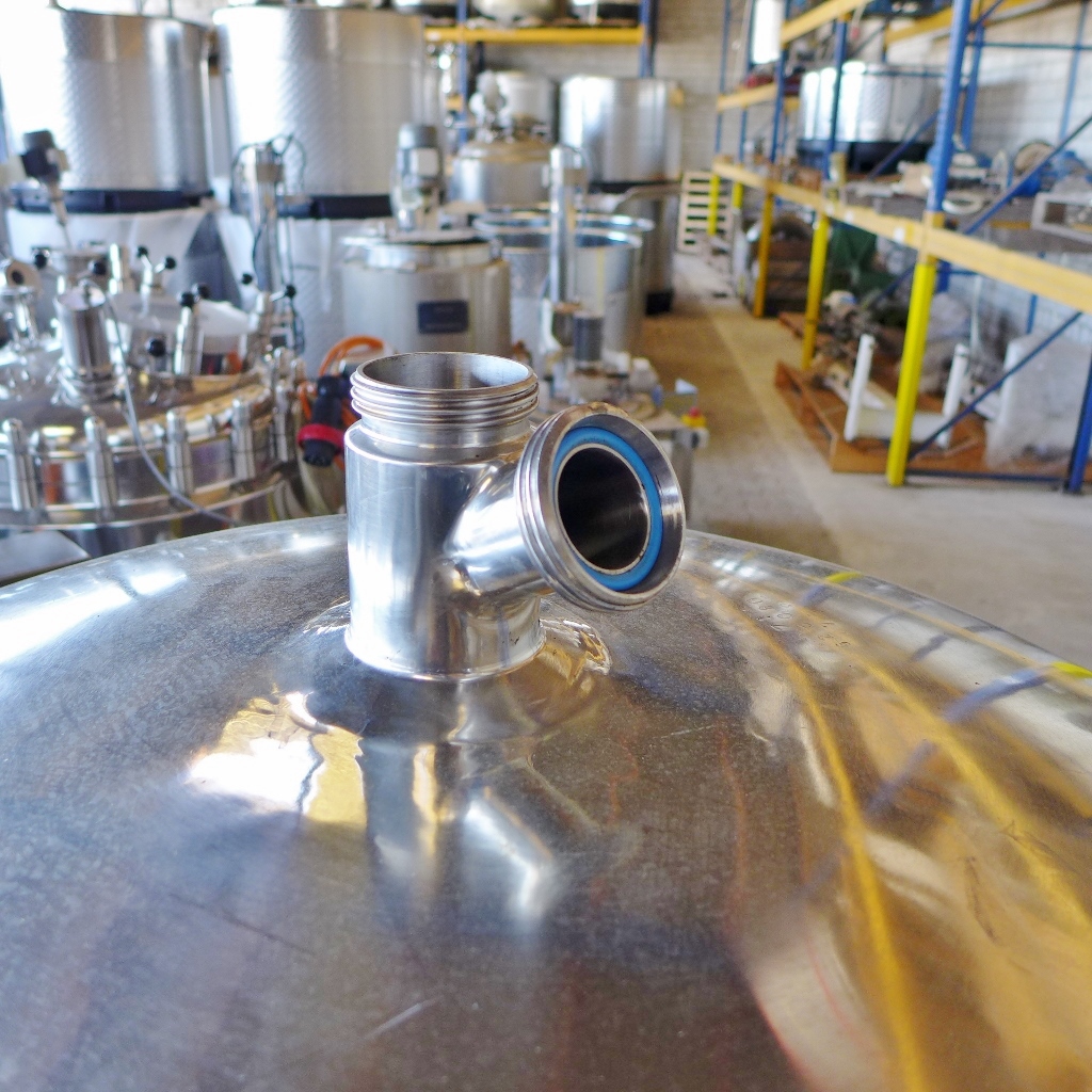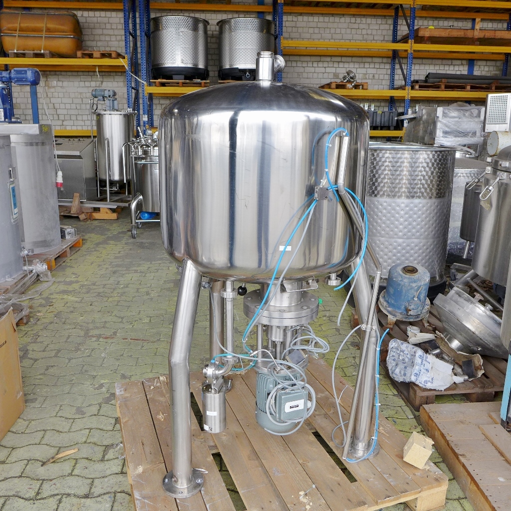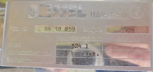 Tank hanging on 3 "feet" in frame or ceiling; Hand hole diameter approx. 300 mm; Outlet fitting is missing; some residues of previous content