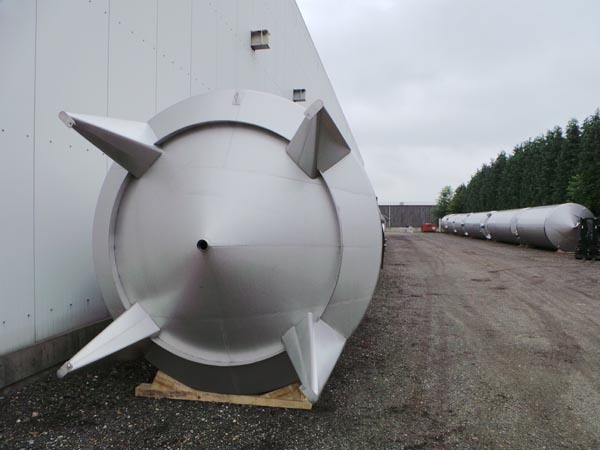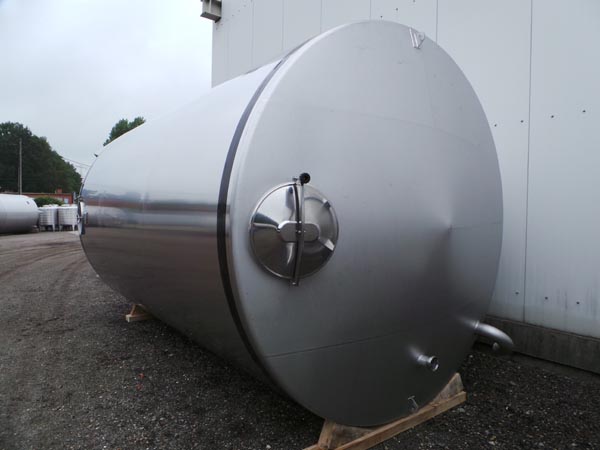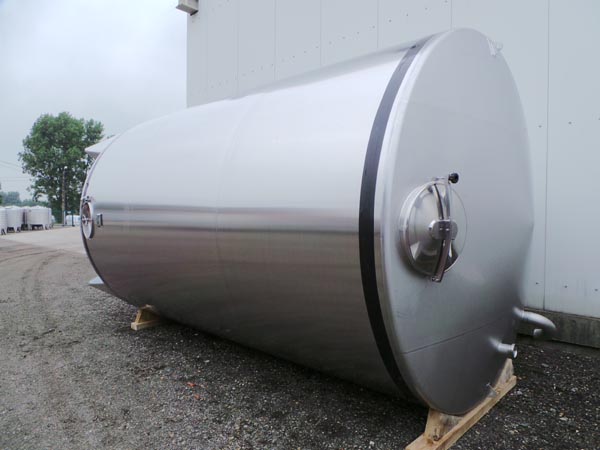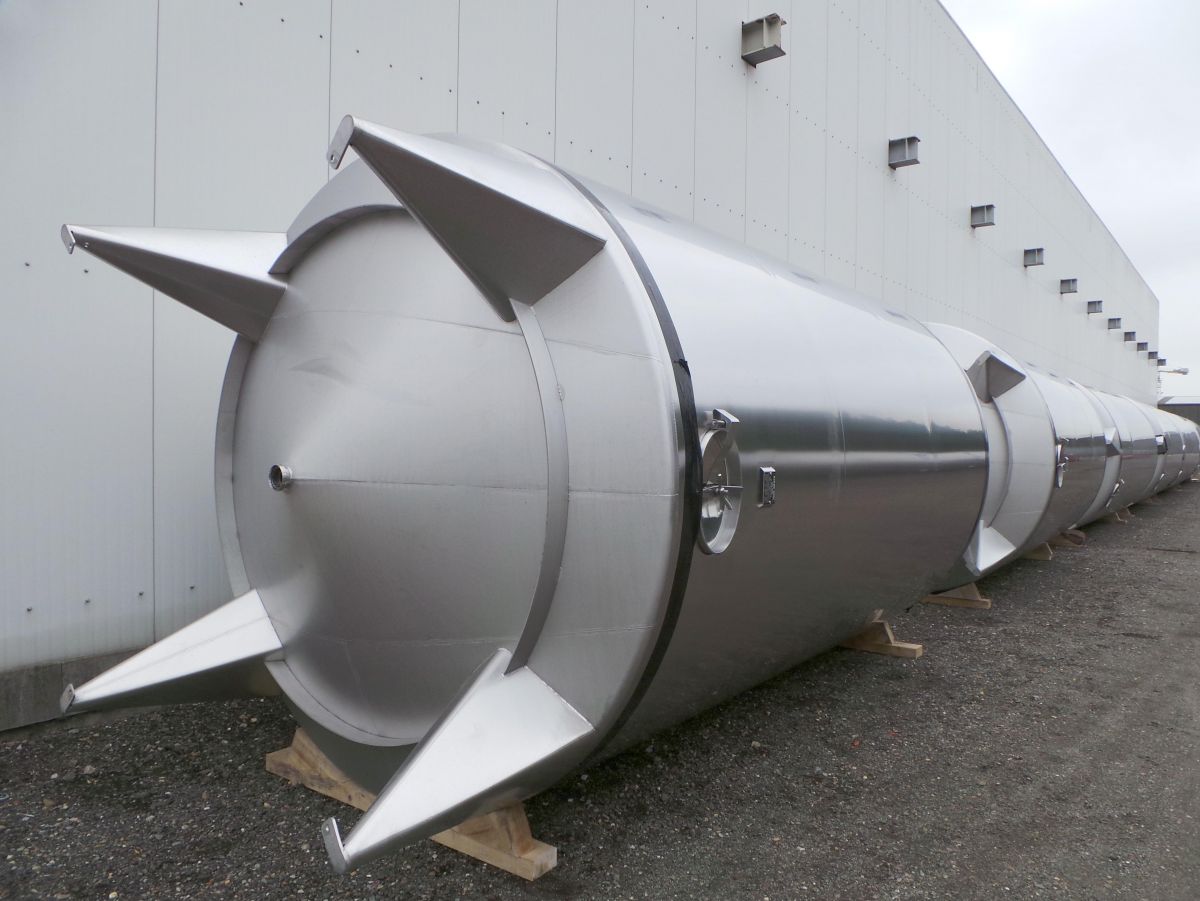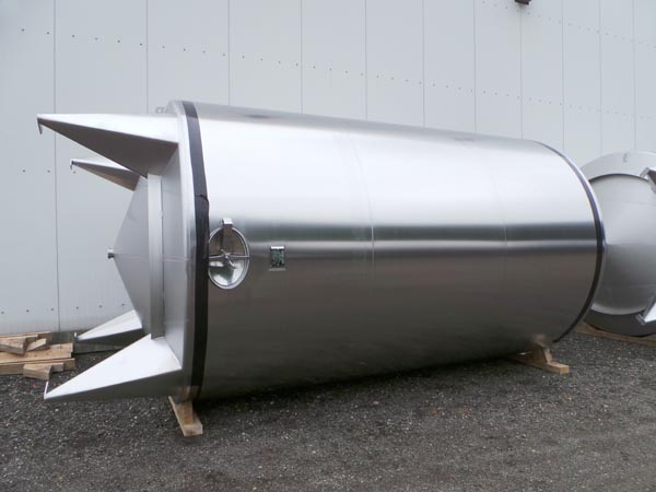 item available on order Article type: brand new storage tank - type TZN-SL Volumetric volume (L): 32.700 L Max. density P (kg/m³): 1.200 Pressure in tank: ATM - atmosferic Material wet parts: SS AISI 316L (V4A) Model: vertical Configuration: single-skin Heat exchanger: no Insulation: no Mobile tank: no Top type: conical 15 ° Shape of tank: cylindrical Bottom type: conical 20 ° Total discharge: yes Fixation points: 4 non adjustable feet Manway(s): RVS 316 Gasket manway(s): EPDM Valve: RVS 316L Fixation point(s): RVS 304 Suitable for food industry: yes Documents included: no Technical drawing included: no Registration plate on the tank: no Inspection of: No Documentation Flange for agitator: no Number of manways: 2 Position of manway: cylinder Height manhole 1 (mm): 440 mm x H 308 mm Position 2nd manway: headside Height manhole 2 (mm): 500 CIP spray ball: no Tank outlet: inside Ø 80 mm Outlet type: DIN 11851 Total outlet valve: no, optional Agitator: no Top: 2 mm Cylinder: 2 mm Bottom: 3 mm Distance from outlet to ground: 405 mm Outer diameter tank: 2.984 mm Cylinder height: 4.500 mm Height of top: 382 mm Height of bottom: 595 mm Feet height: 1.000 mm Total height of tank: 5.882 mm Empty weight tank: 2.900