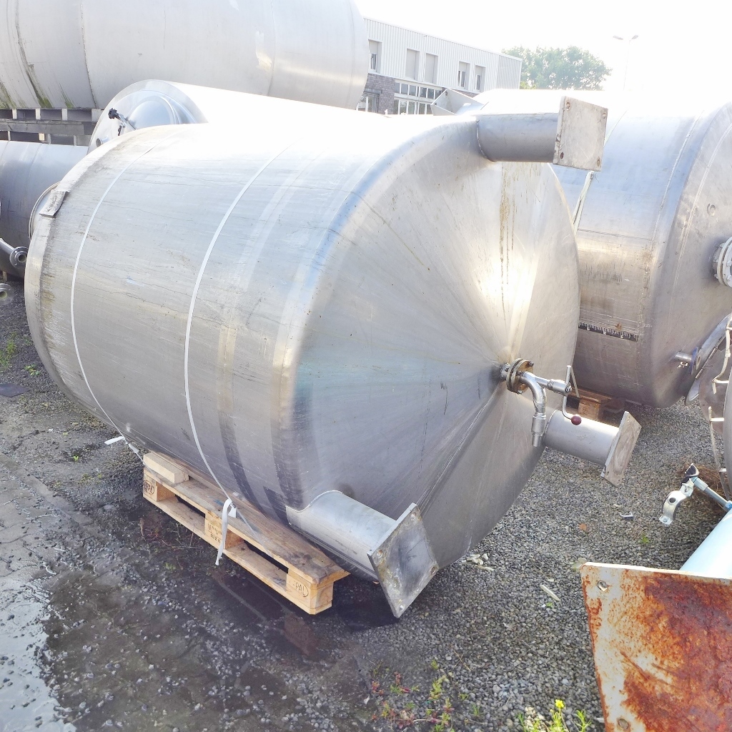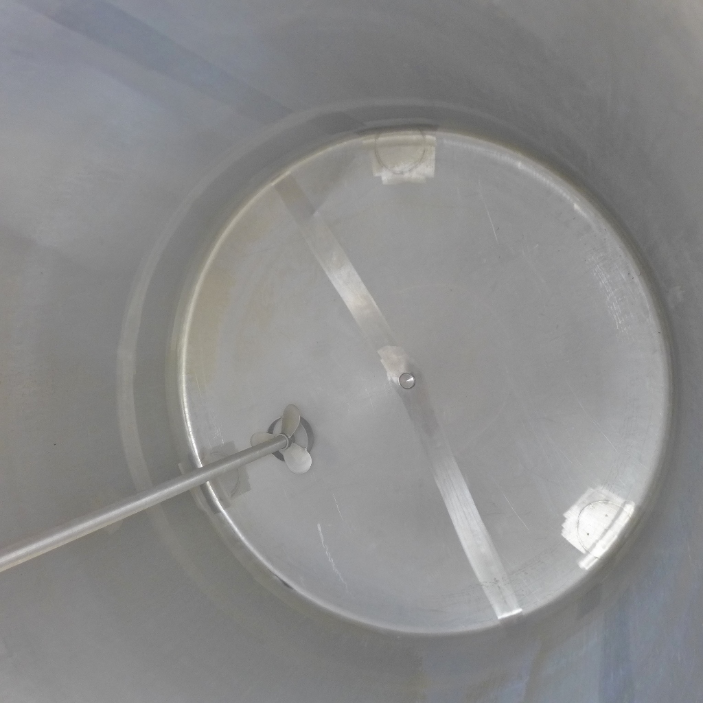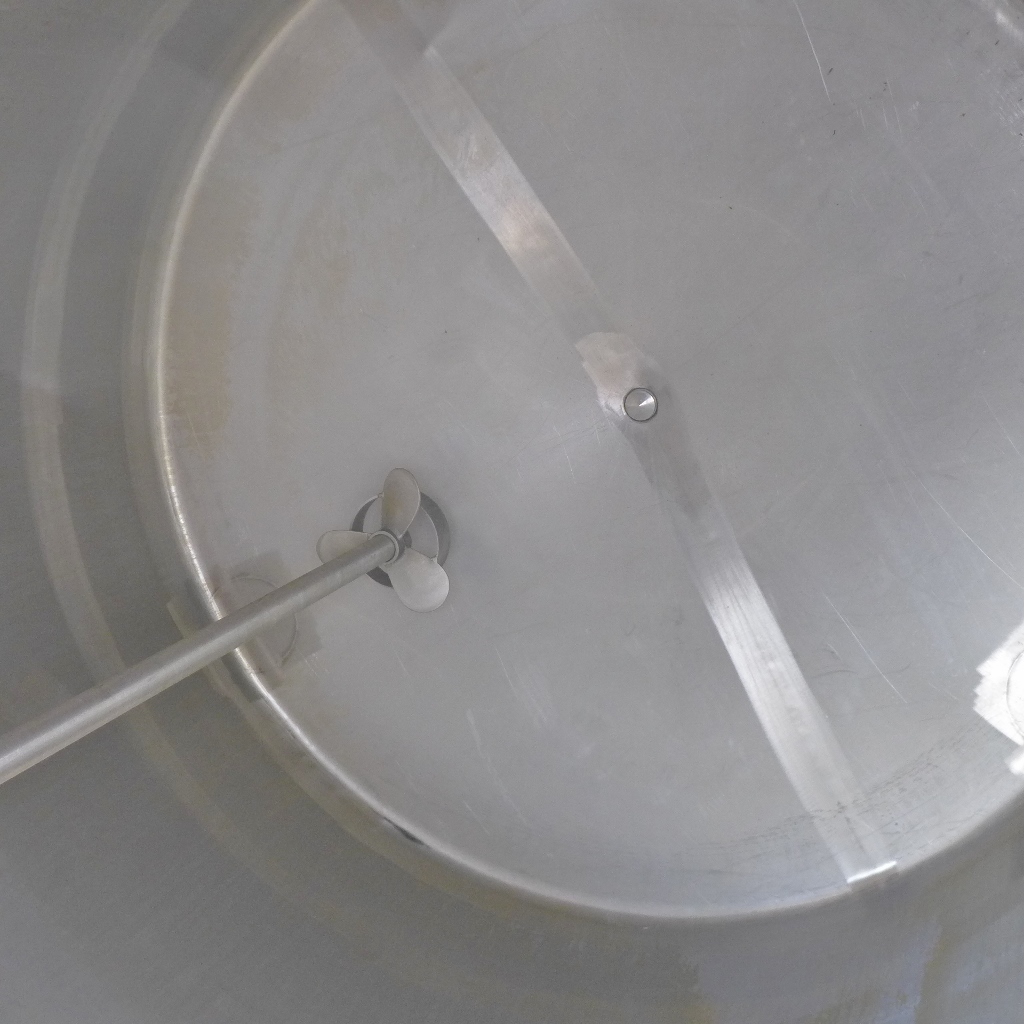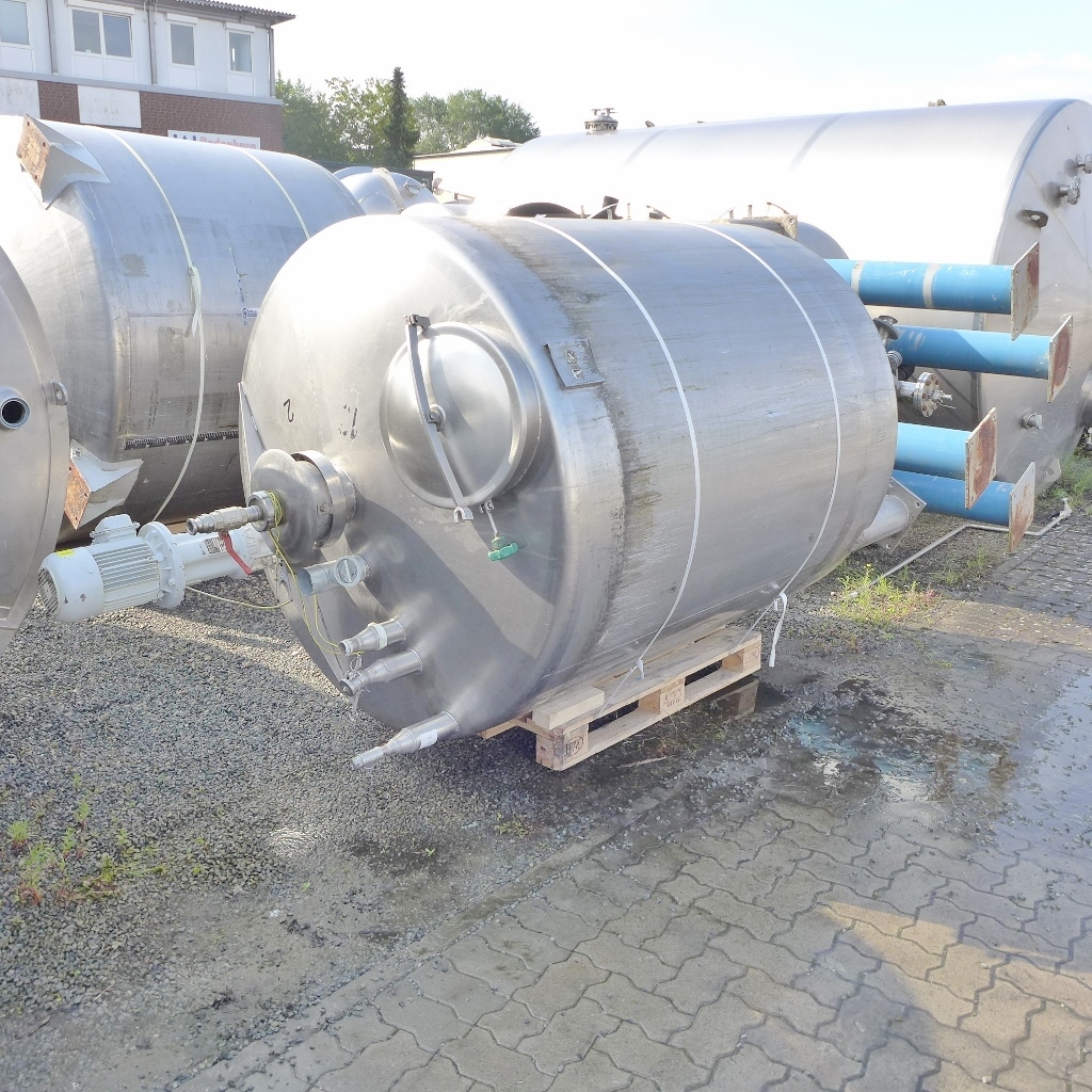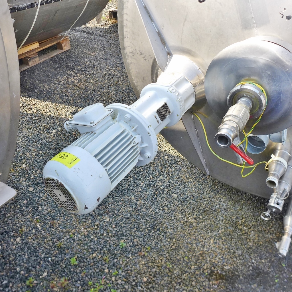 Additional information: Cosmetics; Outlet with flanged fitting diameter pipe inside approx. 22 mm (caution: fitting extends beyond the end of the feet; note this when installing the tank); some residues of previous content Volumetric volume (L): 3.300 L Pressure in tank: ATM - atmosferic Material wet parts: SS AISI 316 (V4A) Model: vertical Configuration: single-skin Heat exchanger: no Insulation: no Mobile tank: no Total discharge: yes Documents included: no Technical drawing included: no Registration plate on the tank: no Flange for agitator: no Position of manway: in the bottom Outlet of tank: available Agitator: yes Number of revolutions: 690 Internal diameter tank: 1.560 mm Cylinder height: 1.750 mm Total height of tank: 3.150 mm Empty weight tank: 680