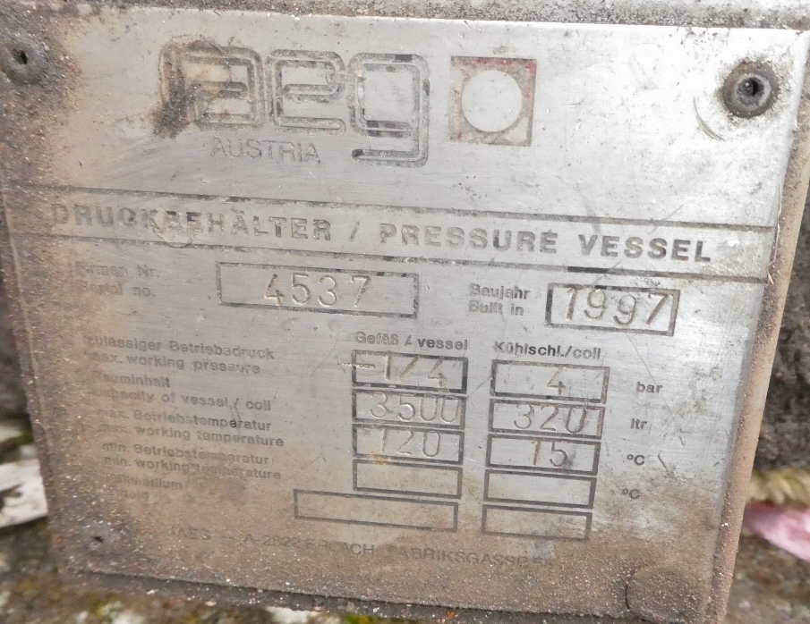 chemistry; Armaflex-insulation on the tank cover and the upper cylindrical area (see pictures); some residues of previous content; we can’t give any guarantees about the agitator