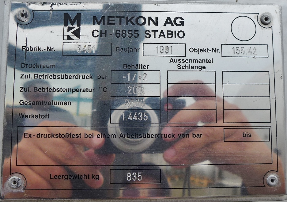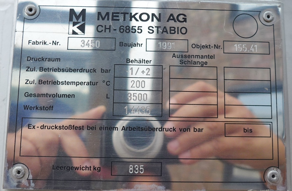 Pharmaceutical Chemistry ; 3 feet, Fe screwed to st. st. support brackets; Manhole diameter approx. 420 mm (most of the manhole cover screws are missing); some residues of previous content