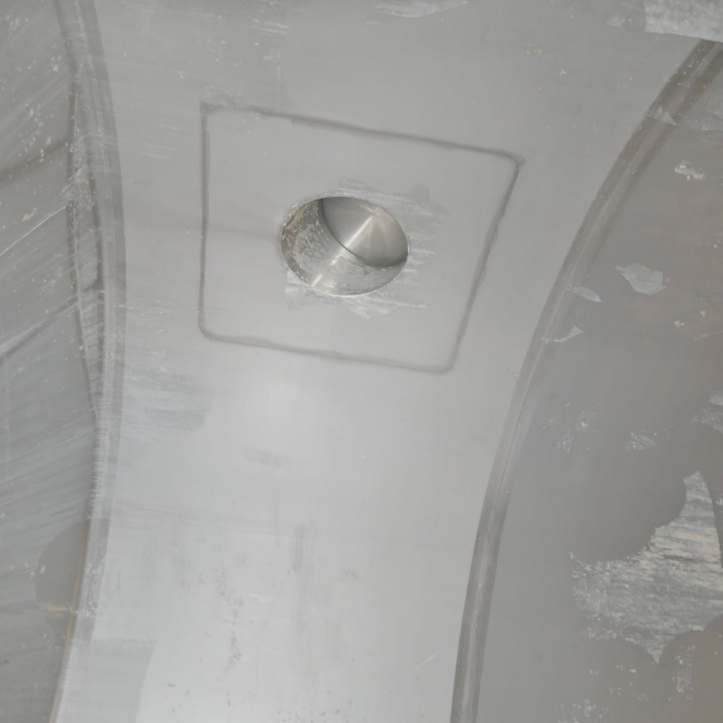 Chemistry; Manhole approx. 360 x 460 mm; height-adjustable screws of the feet no longer available; 1 pipe inside the tank; some residues of previous content