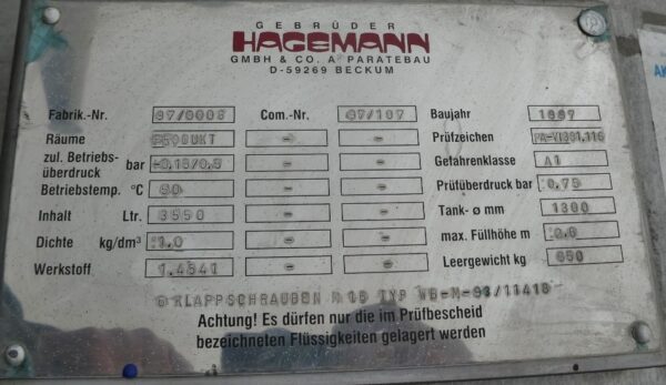 Laundry detergent; Manhole diameter 500 mm; Adhesions inside; 1 welded pipe inside; we can’t give any guarantees about the agitator