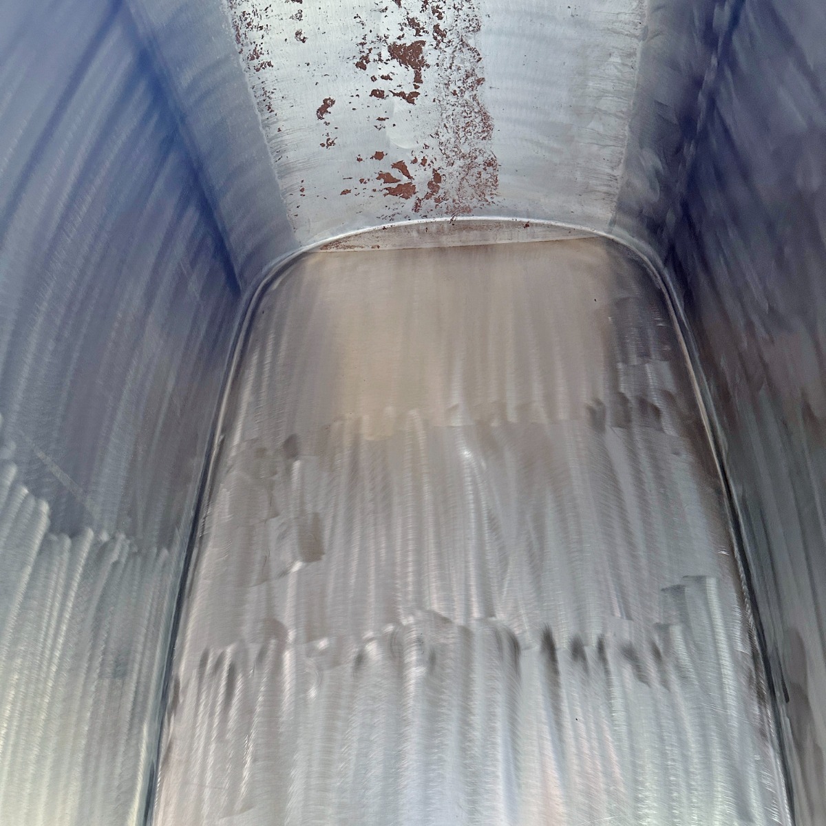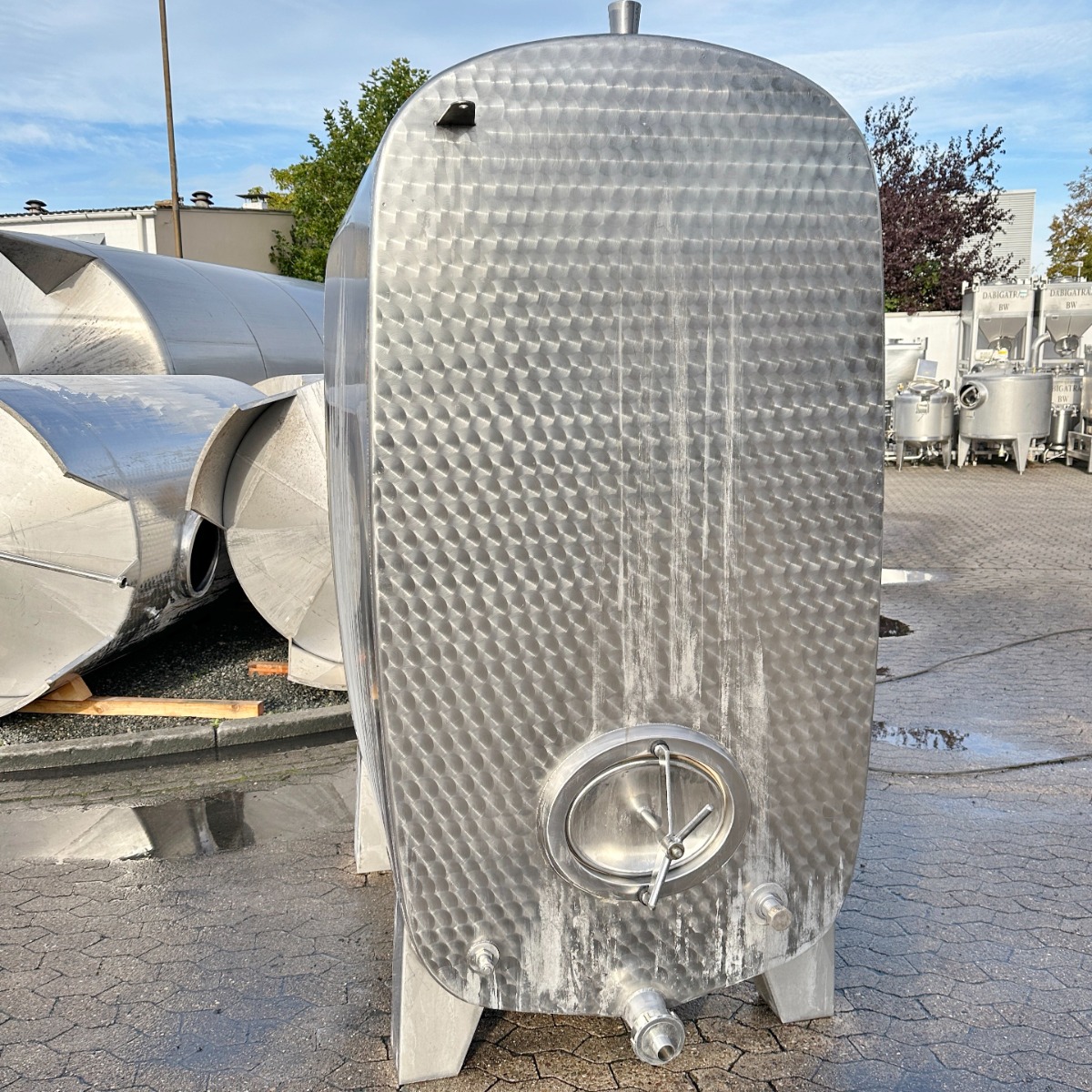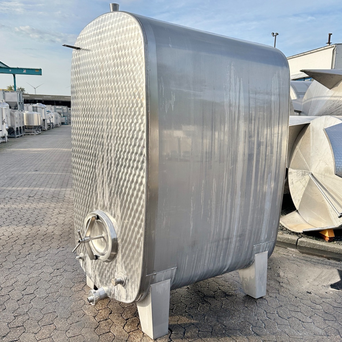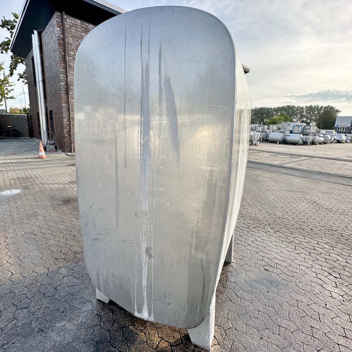 Additional information: fruit juice; 1 manhole approx. 30 x 400 mm in the front bottom; ; some residues of previous content; lime residues Volumetric volume (L): 3.600 L Pressure in tank: ATM - atmosferic Material wet parts: SS AISI 304 (V2A) Configuration: single-skin Heat exchanger: no Insulation: no Mobile tank: no Total discharge: yes Documents included: no Technical drawing included: no Registration plate on the tank: no Flange for agitator: no Outlet of tank: DN80 DIN 11851 Total height of tank: 2.430 mm Total outer width: 1.200 mm Total outer length: 1.780 mm