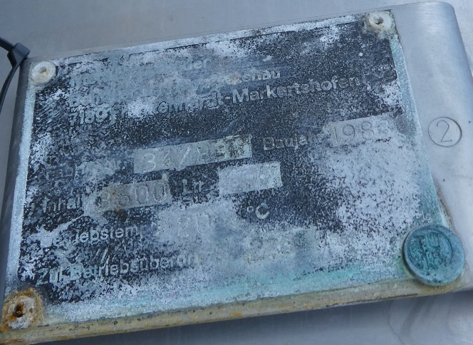 brewery; 1 pipe inside the tank (see photos); manhole appr. 345 x 440 mm; dents at the insulation jacket