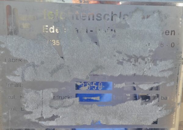 chemistry; 1 trectangular opening in the upper bottom (approx. 690 x 400 mm; becomes wider than 400 mm due to the rounding); some residues of previous content; we can’t give any guarantees about the