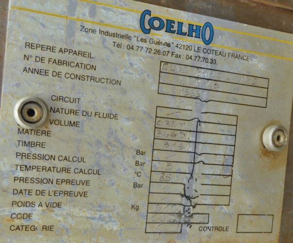 cosmetic; differences in design (see pictures); type plates are only available for 1 tank; cone height appr. 800 mm; hand hole 350 mm in the upper bottom; some residues of previous content