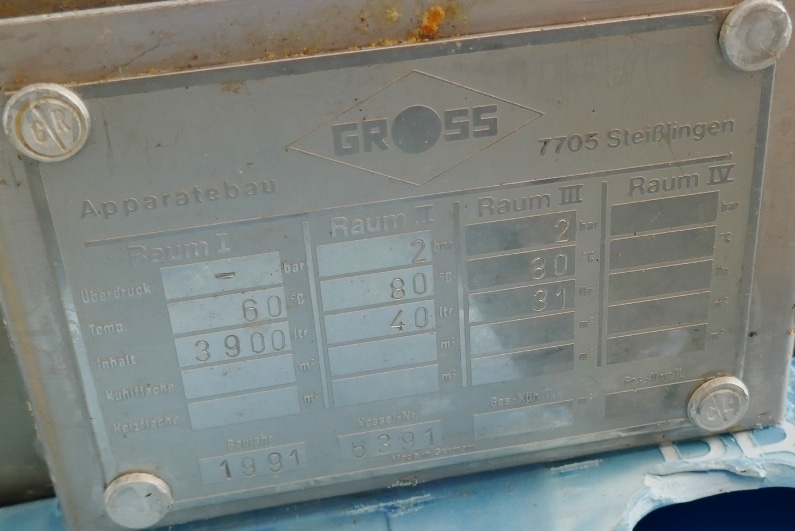 4 support brackets made of stainless steel; some residues of previous content;motor-/gear is missing; we can’t give any guarantees about the heating/cooling jacket; we can’t give any guarantees