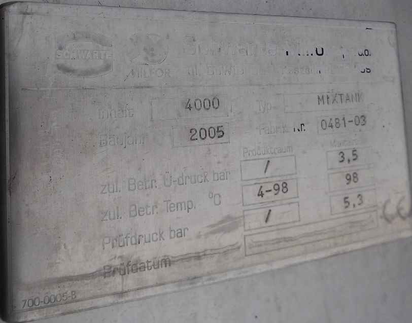 Ice cream factory; 1 tank is approx. 350 mm higher in total height due to a pipeline; The height-adjustable screw on 1 foot of 1 tank is missing; we can’t give any guarantees about the