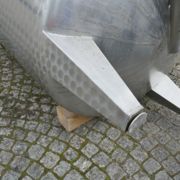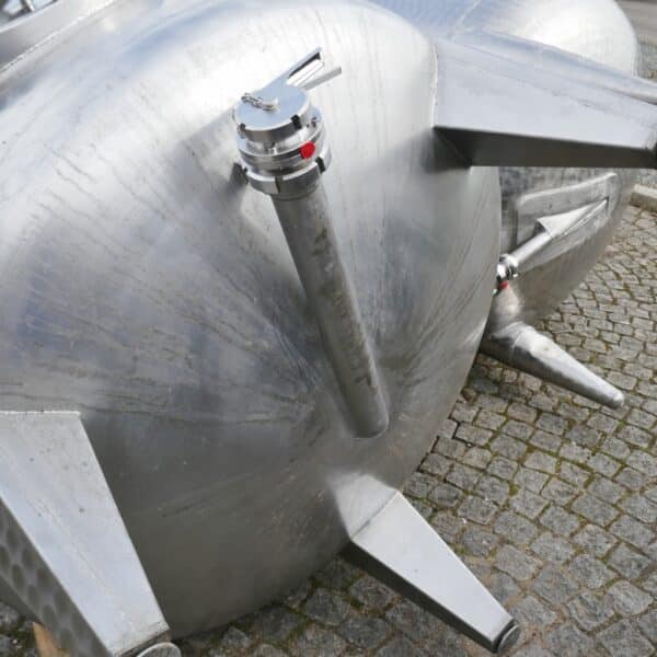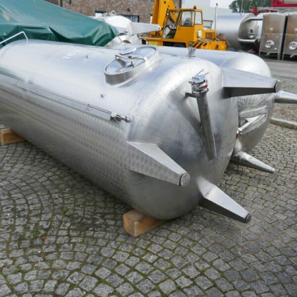 Wine storage; 1 manhole approx. 320 x 425 mm in the cylinder; 1 screwed-on outlet fitting with disc valve reduces the outlet to DN 50 DIN 11851; tank was professionally cleaned and overhauled in