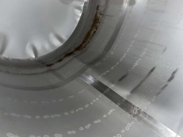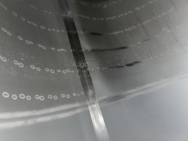 The cooling jacket is broken, the tank itself has been pressure tested to 3 bar and does not leak. The tank has some deformations at the front and one inside the tank –> look closely at the