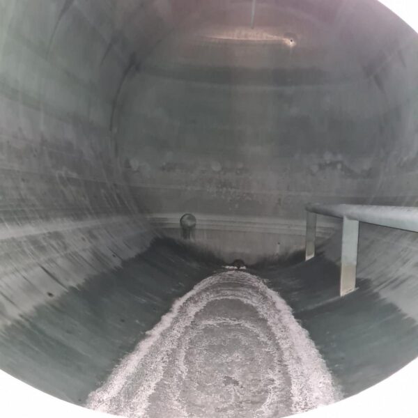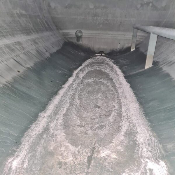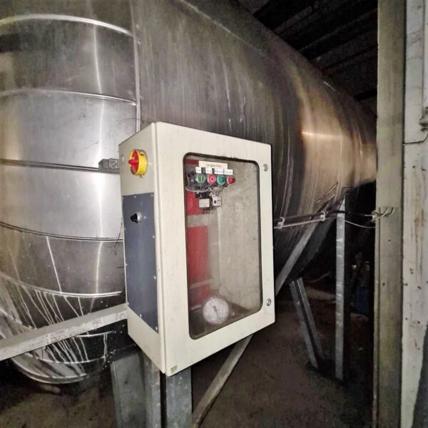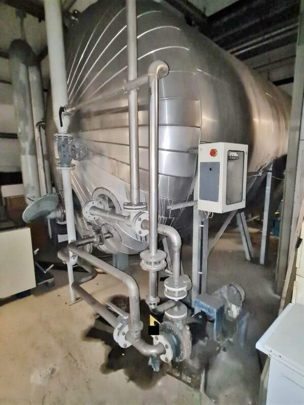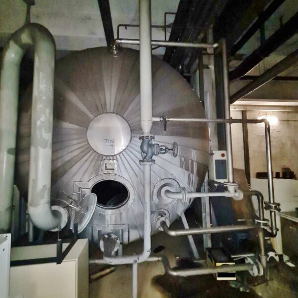 Residual lye tank in a brewery; 1 Manhole in the front bottom; some residues of previous content