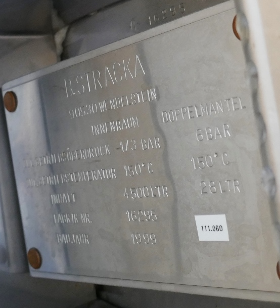 Pharmacy; Half-coil around approx. 900 mm of the cylinder height; Smaller dents in the insulation jacket; Metallic discolouration inside; we can’t give any guarantees about the heating/cooling jacket