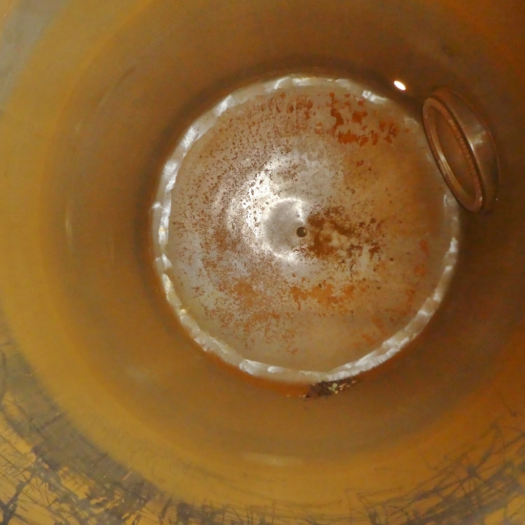 Winery; Brownish adhesions inside (presumably lime); 1 circular opening (diameter approx. 105 mm) in the upper bottom (see photos); If you are looking for another tank that is identical to this