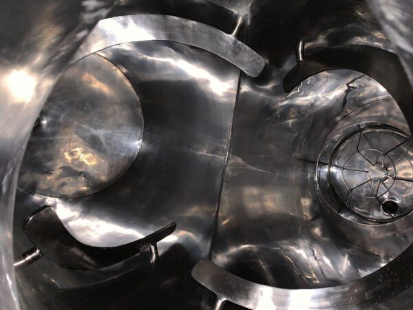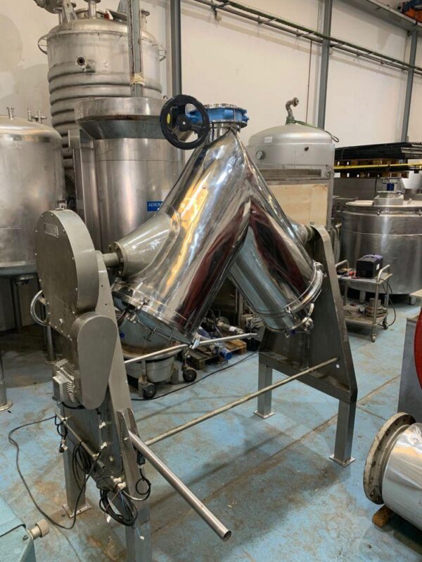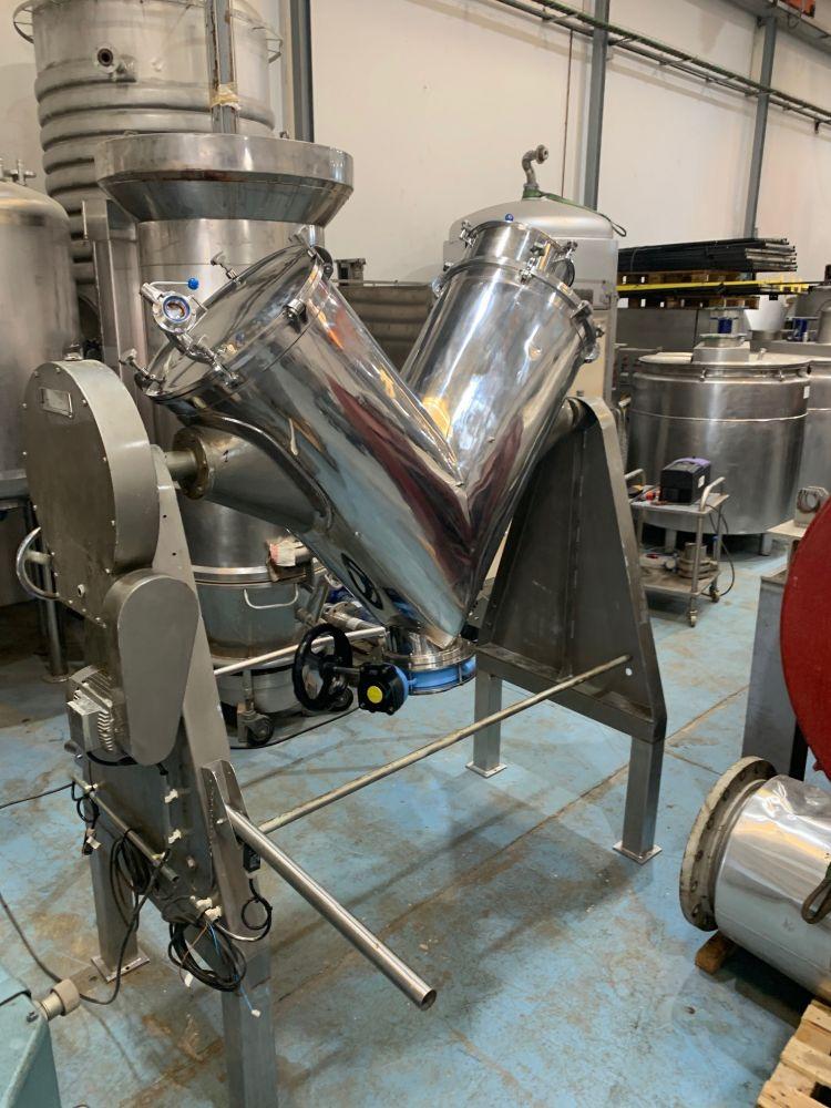V-mixer make GLATT in stainless steel model K with a volume of 500 liters. Unloading with manual butterfly valve.; we can’t give any guarantees about the agitator
