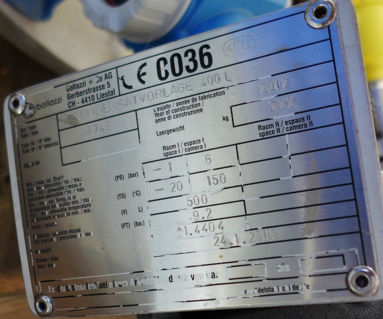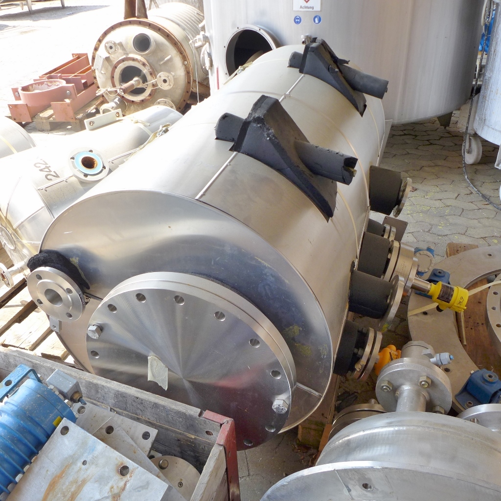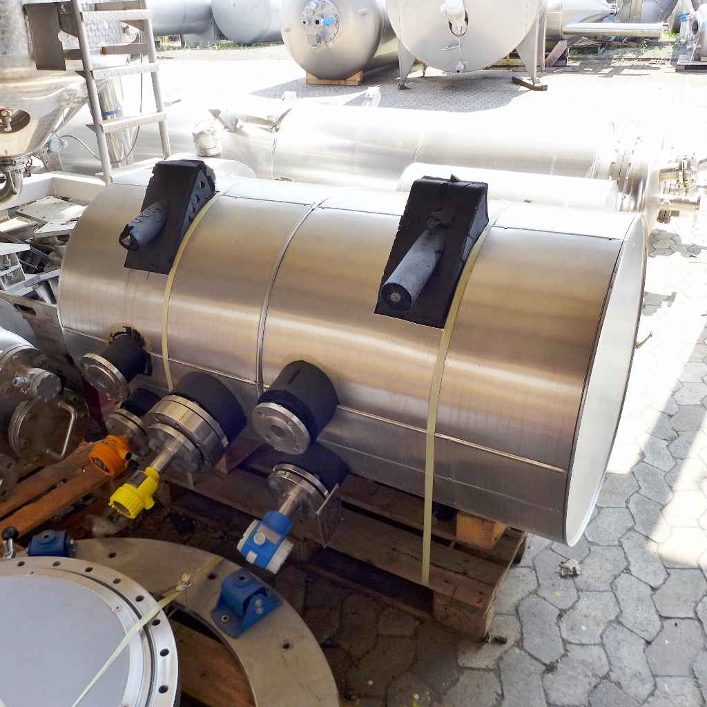 Anpassad för kemikaliehantering erbjuder 500 liter tank i Syrafast 316 en säker och effektiv tanklösning. Med volym: 500 liter, med ett arbetstryck på pressure and vacuum, max övertryck: 6 Bar, undertryck: 1 Bar, max arbetstemperatur: 150 °C, vätskeberörd yta: SS AISI 316 (V4A), konfiguration: insulated, stationär tank, total urtappning finns, utan dokumentation, utan teknisk ritning, med märkskylt, utan fläns för omrörare, invändig diameter på 690 mm, modell: Vertikal, tillverkad i Syrafast 316, utan omrörare, utan uppvärmning/kylning, isolerad, trycktank, ytterdiameter: 800 mm, vikt: 520 kg, begagnad är den redo för professionell användning.